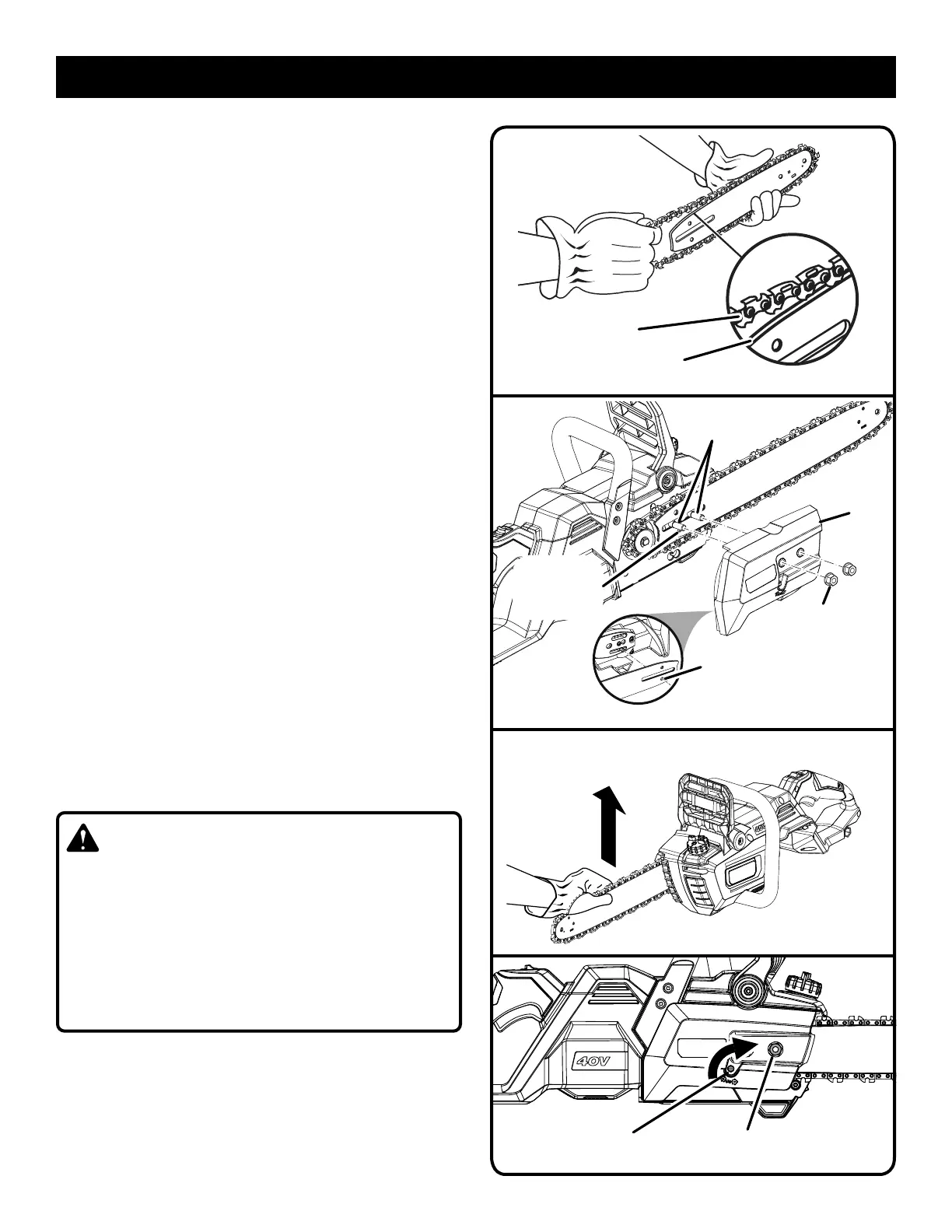 piles. Ne jamais toucher ou régler la chaîne lorsque