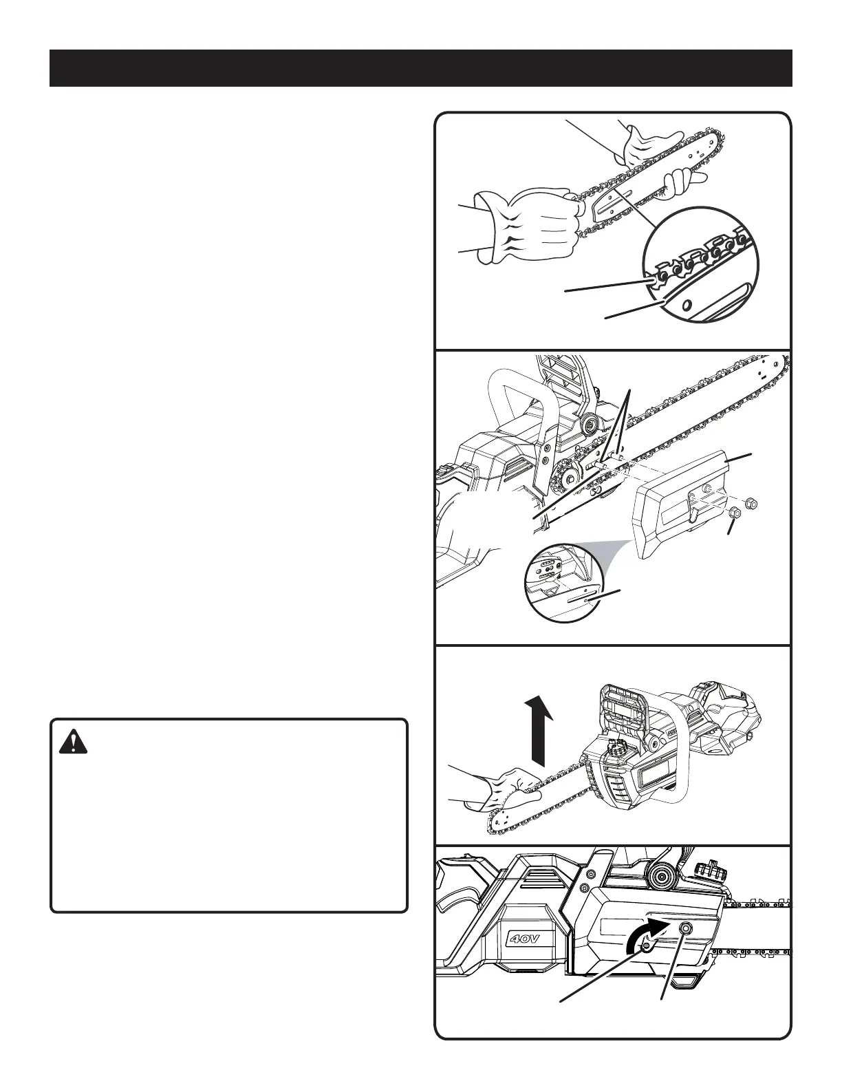 NOTE : Une chaîne trop serrée ne tournera pas.