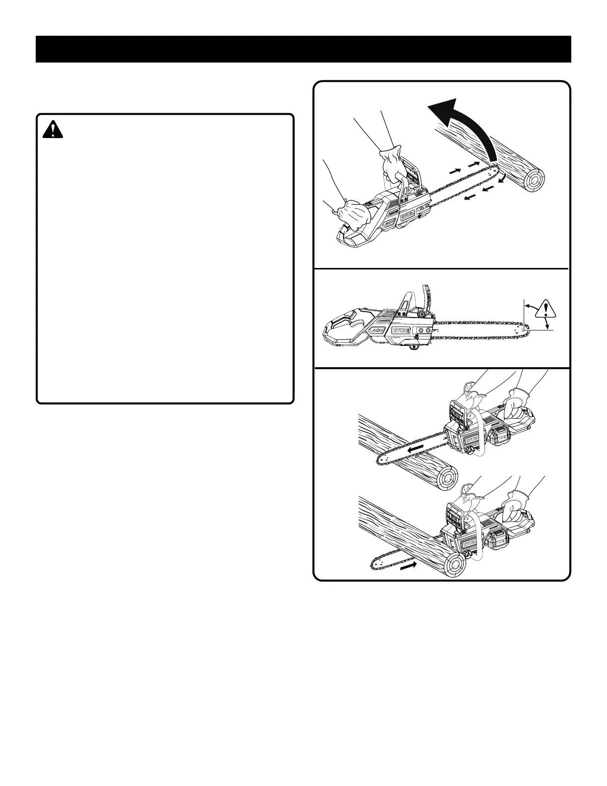 • Toujours tenir la scie fermement, à deux