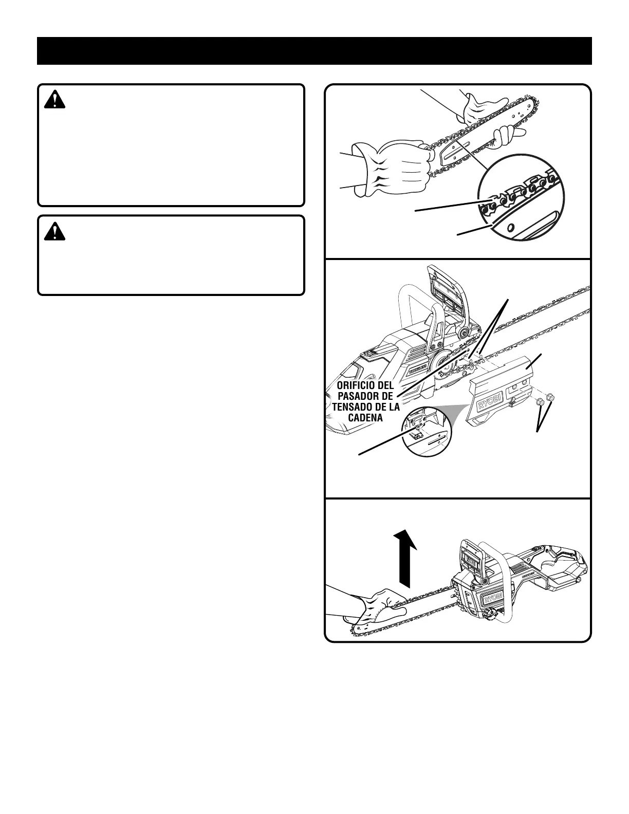 NOTA: Al reemplazar la barra guía y la cadena,