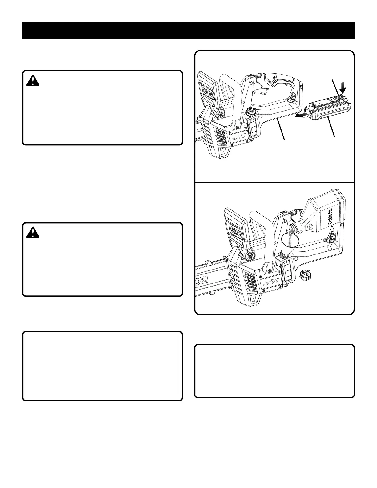 Place the battery pack in your chain saw. Align