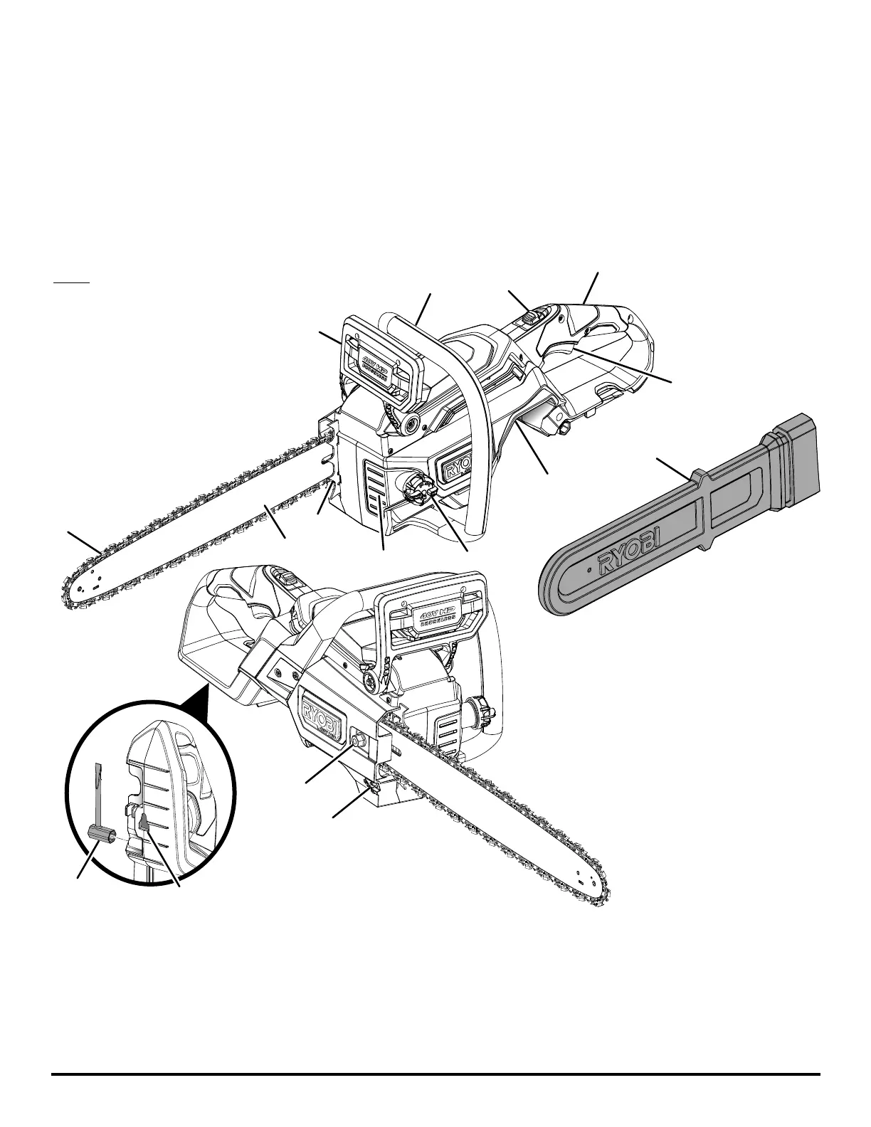 H - Hand guard/chain brake (protection de poignée avant / frein de chaîne,