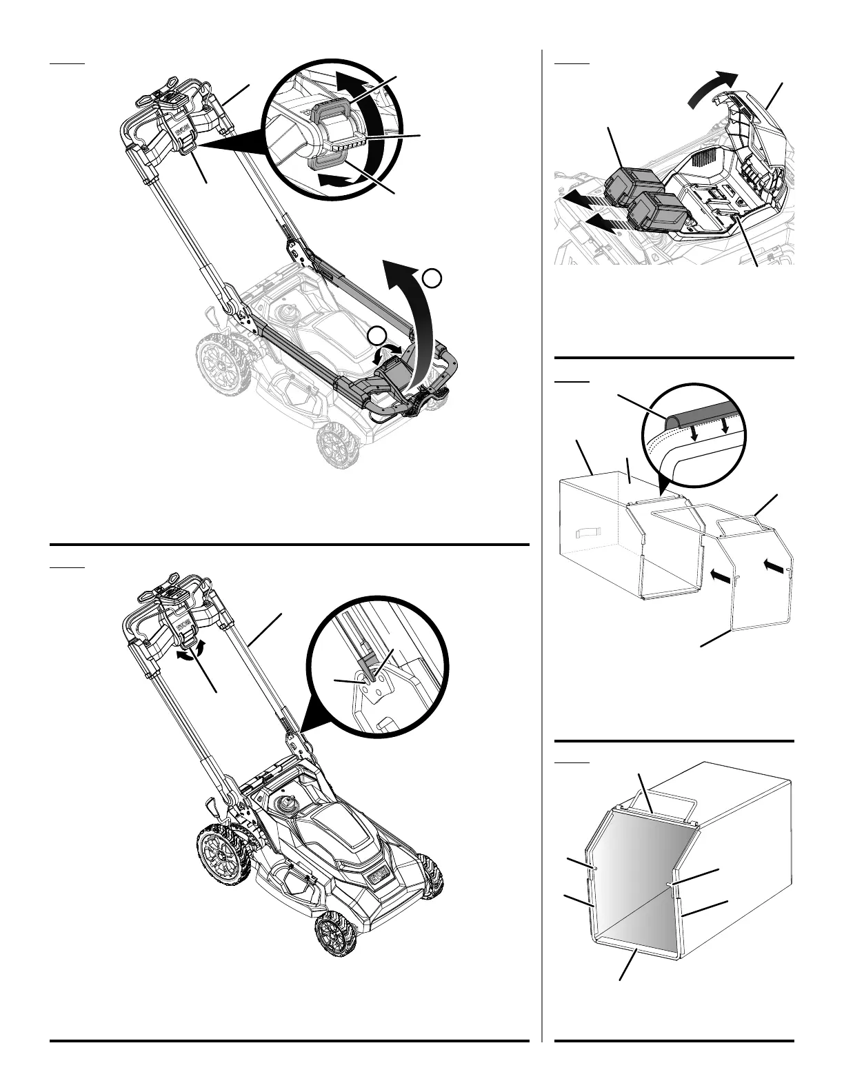 B - Handle adjustment lever (levier de réglage de la poignée, palanca de ajuste del mango)