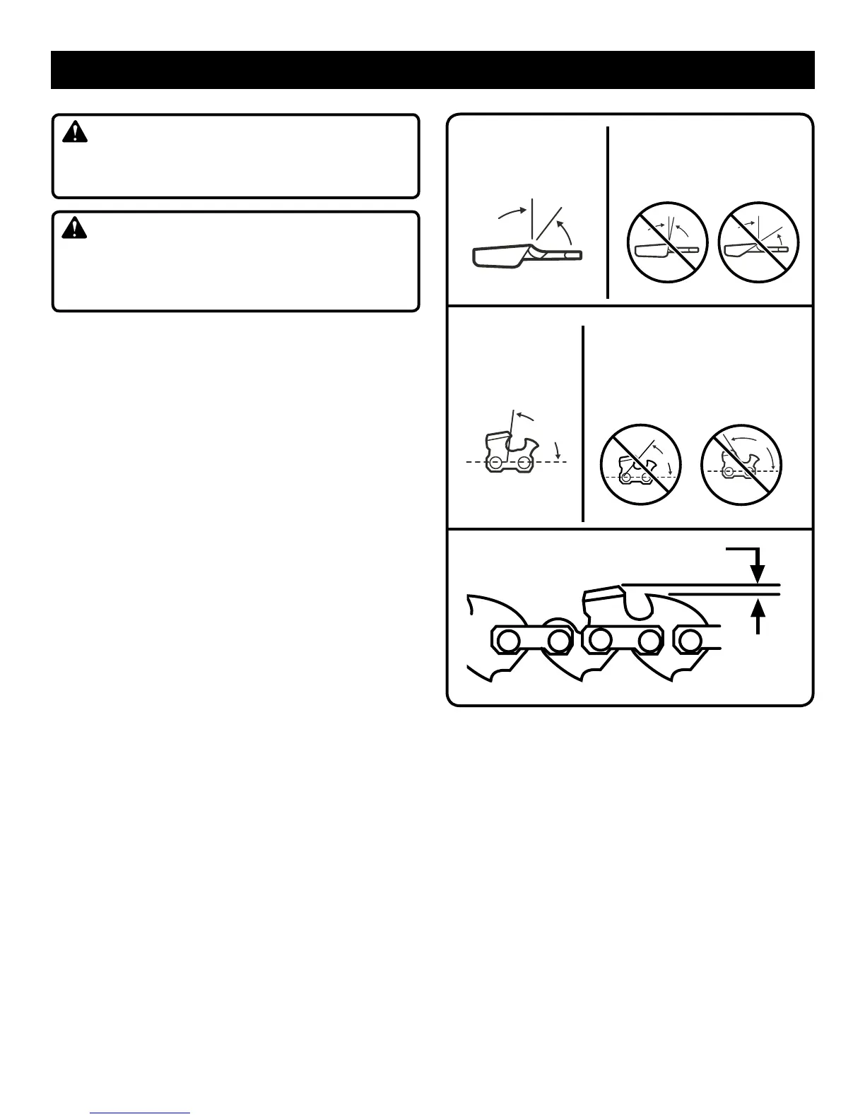 n Every time the chain is filed, check the depth gauge clear-