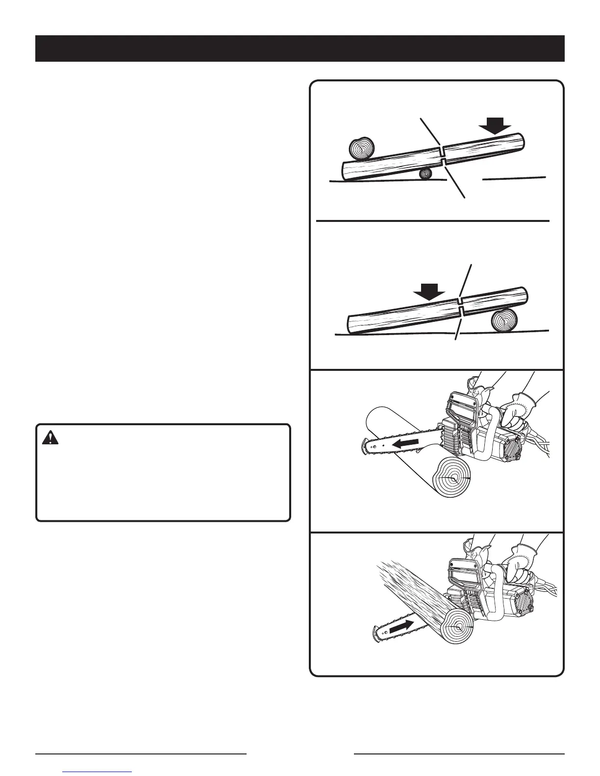 saw can become pinched or hung in the log if you