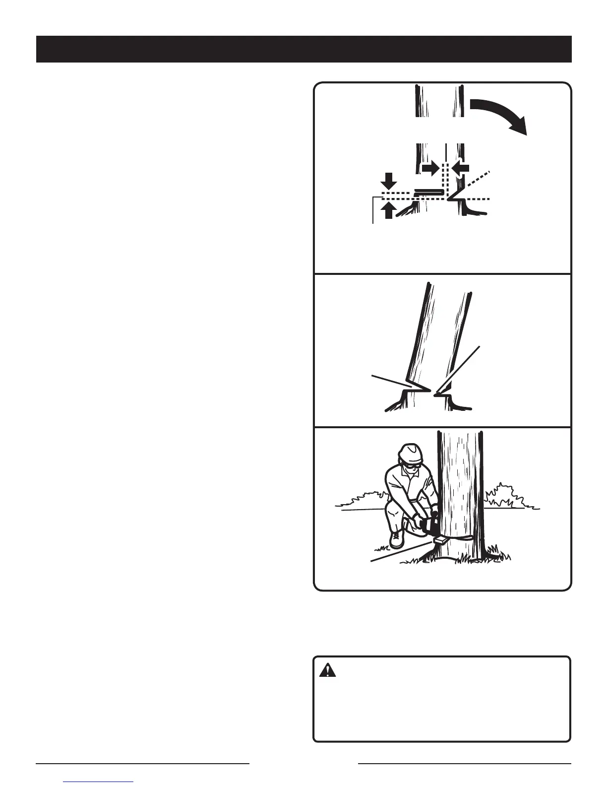 Dès que l’arbre commence à tomber, arrêter la scie