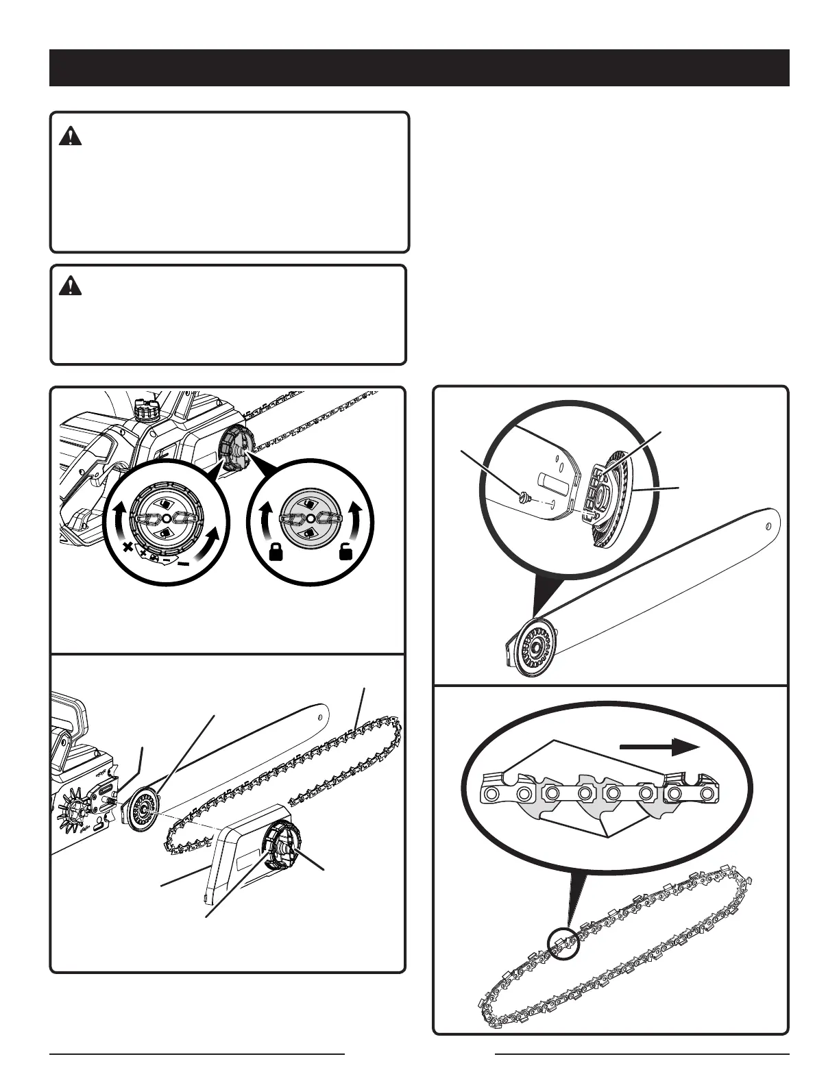 du guide et de la chaîne qui sont tranchants et