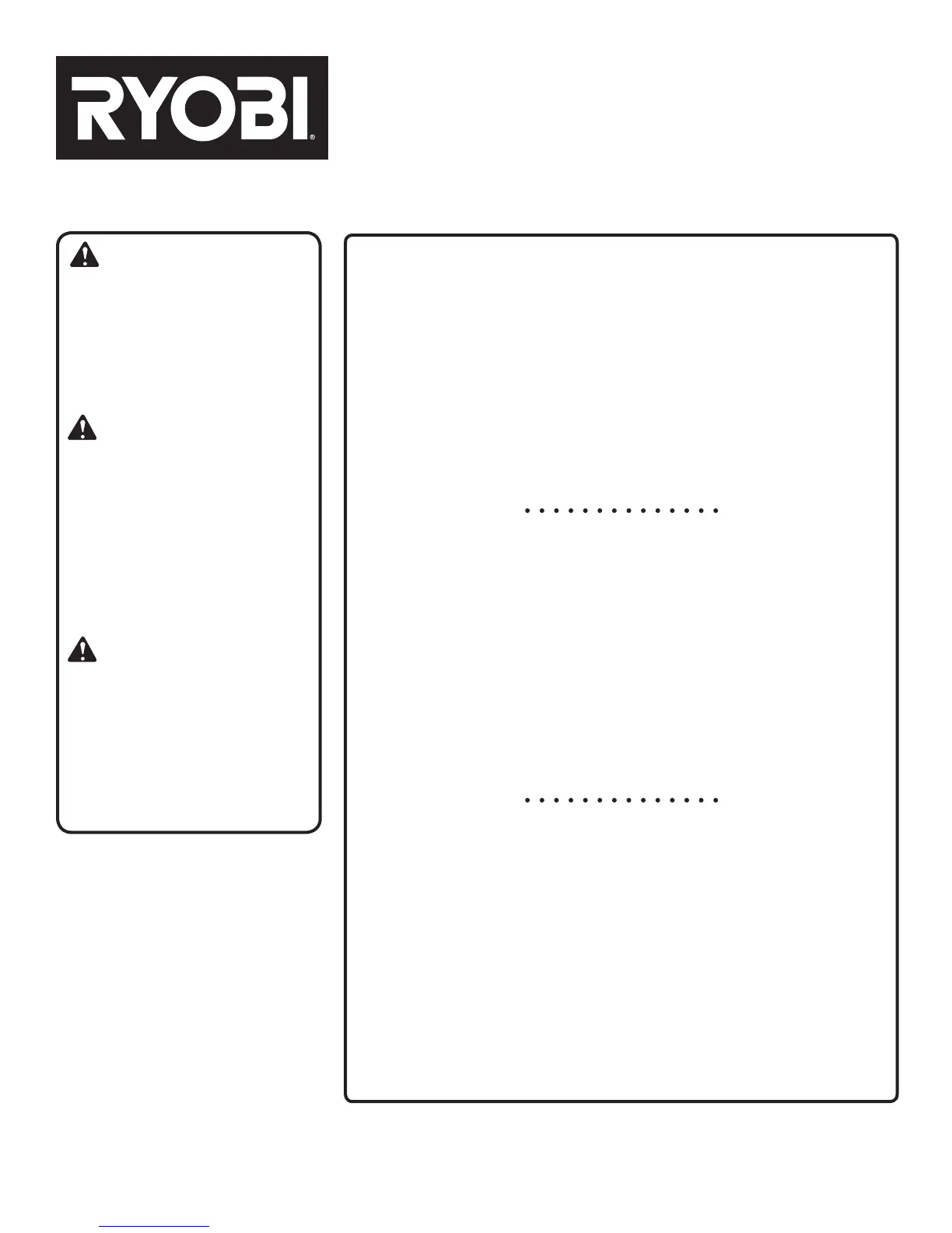 Replacement parts can be purchased online at www.ryobitools.com or by calling