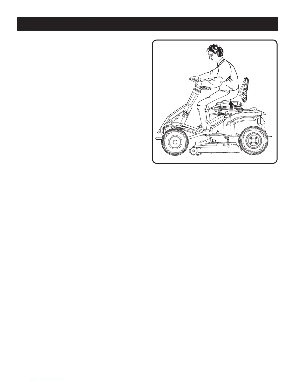 Briefly lift off the seat, but do not get off the mower.