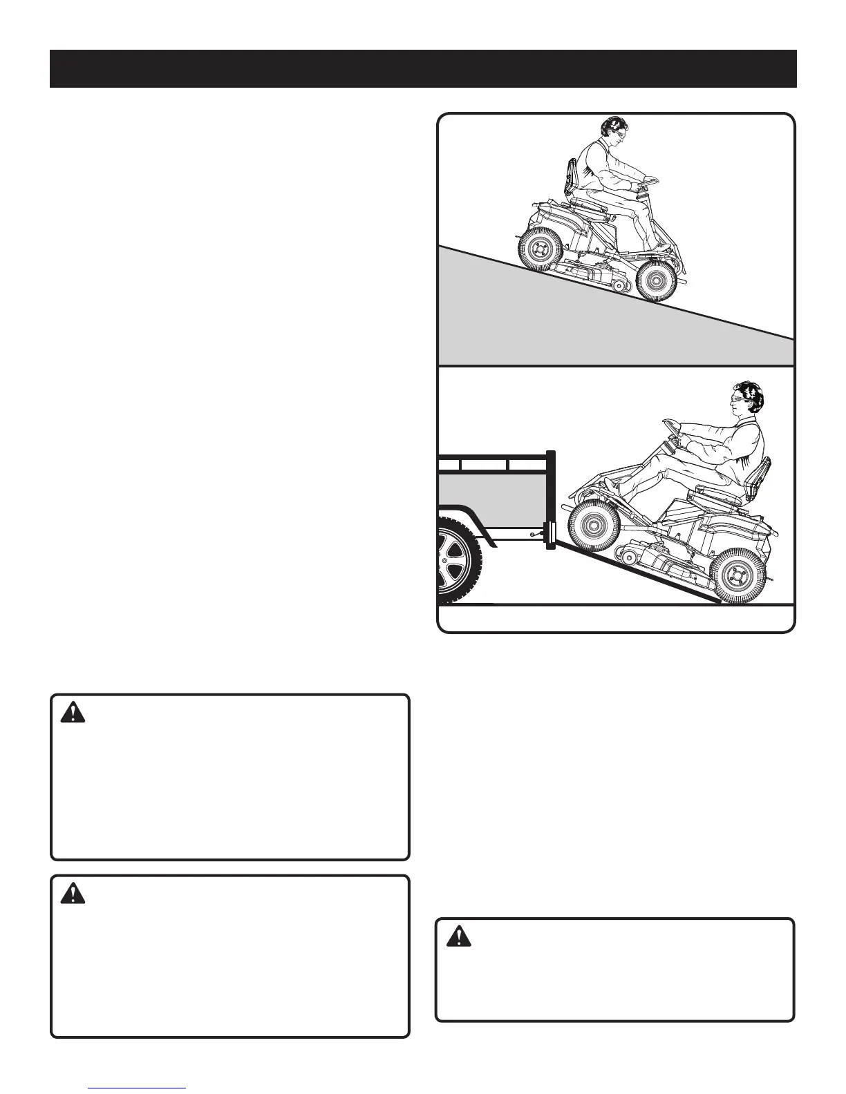 Conduirelentement la tondeuse surla rampe etdans la