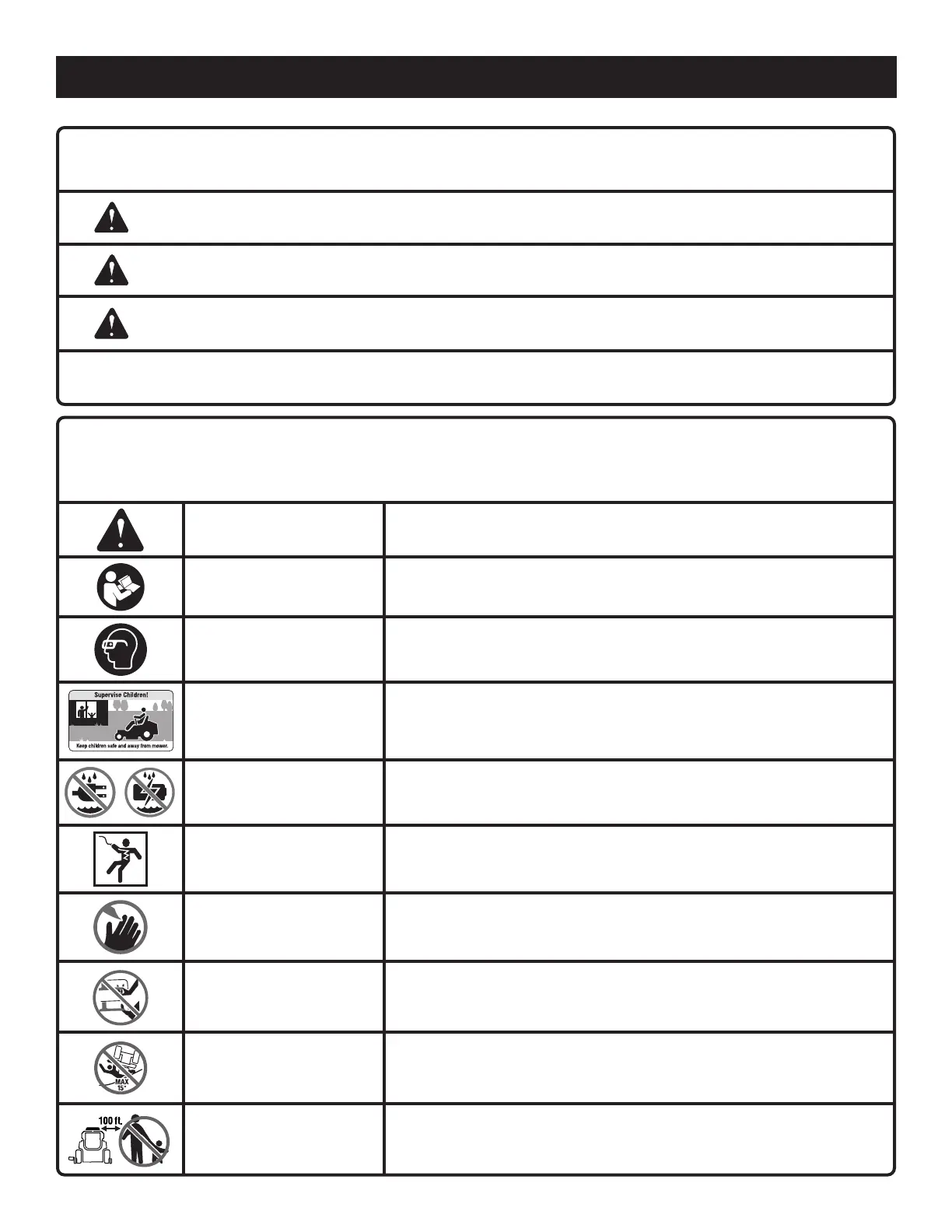To reduce the risk of injury, user must read and understand operator’s