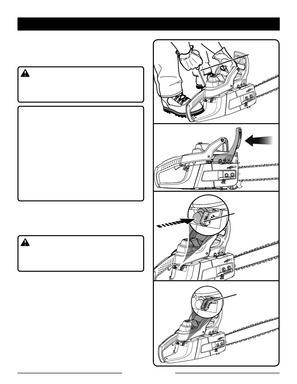 S’assurer que le frein de chaîne est en position de