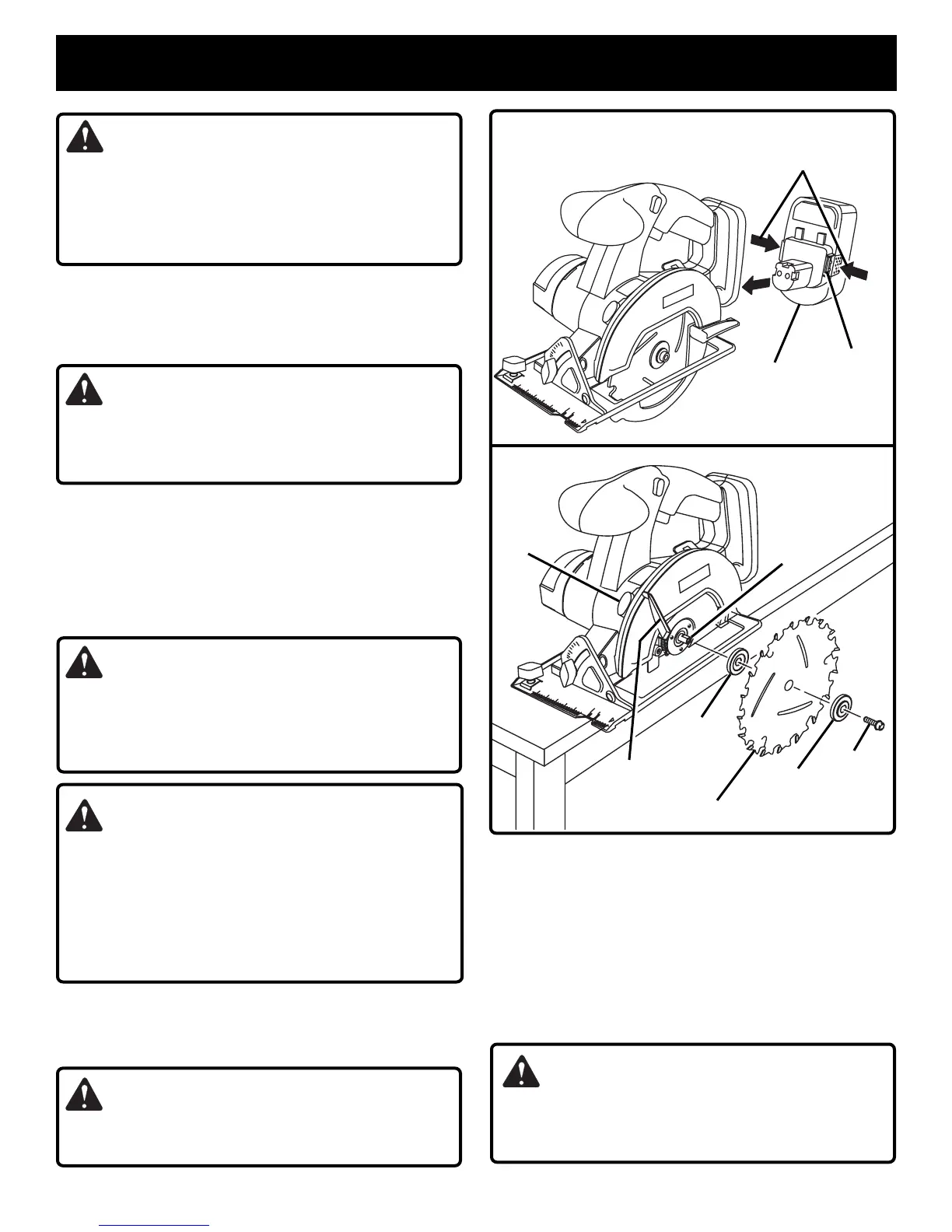 ■ Remove battery pack from your saw.