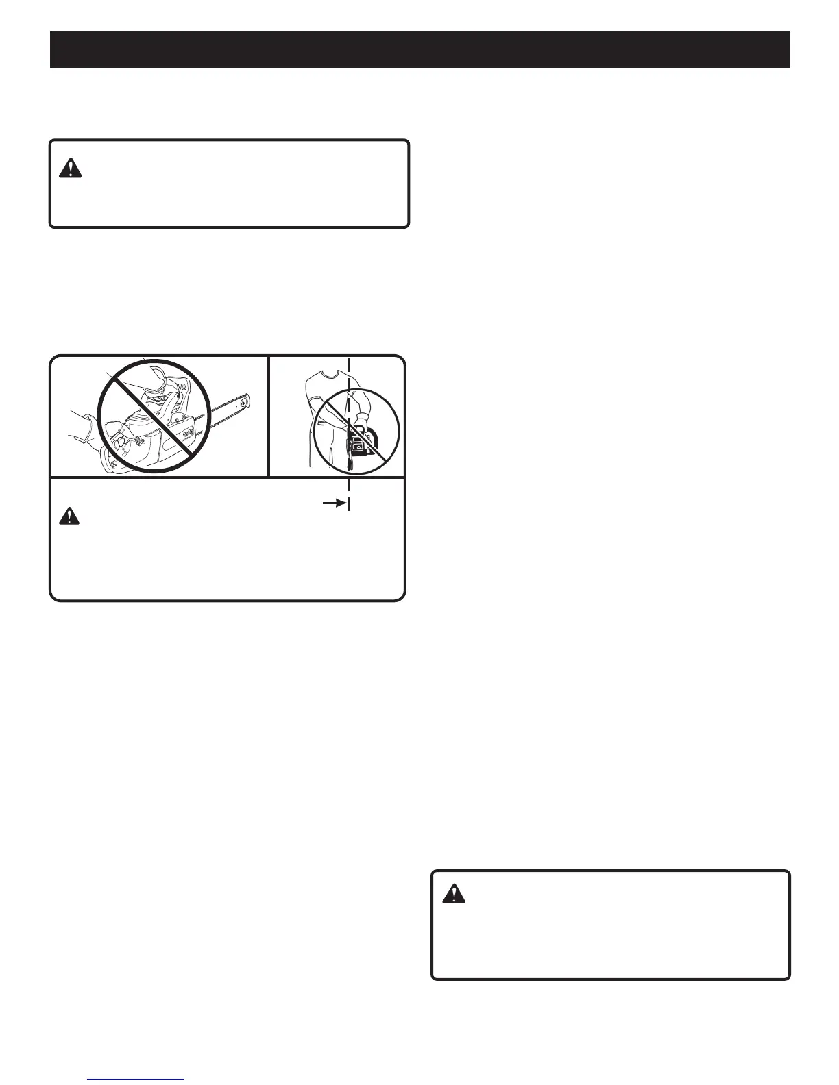 ■ Do not cut above chest height as a saw held higher is