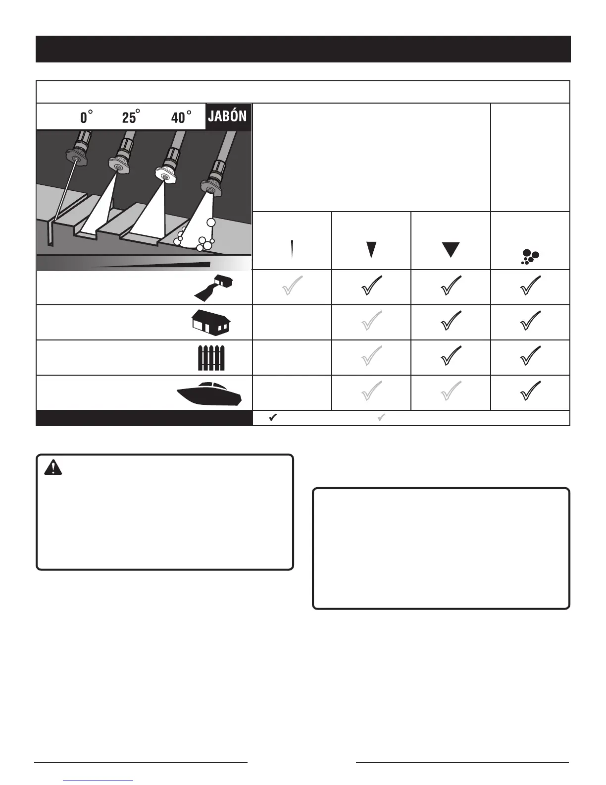 Boquilla recomendada Usar con cuidado en ciertas aplicaciones
