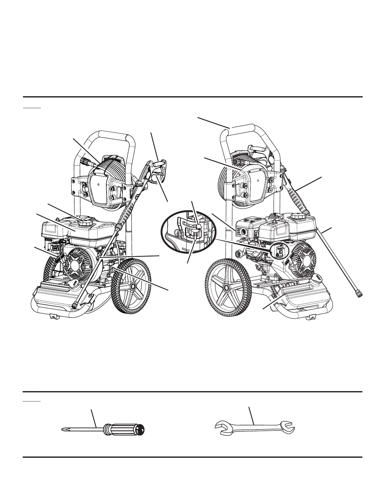 B - 10 mm wrench (clé de 10 mm, llave de 10 mm)