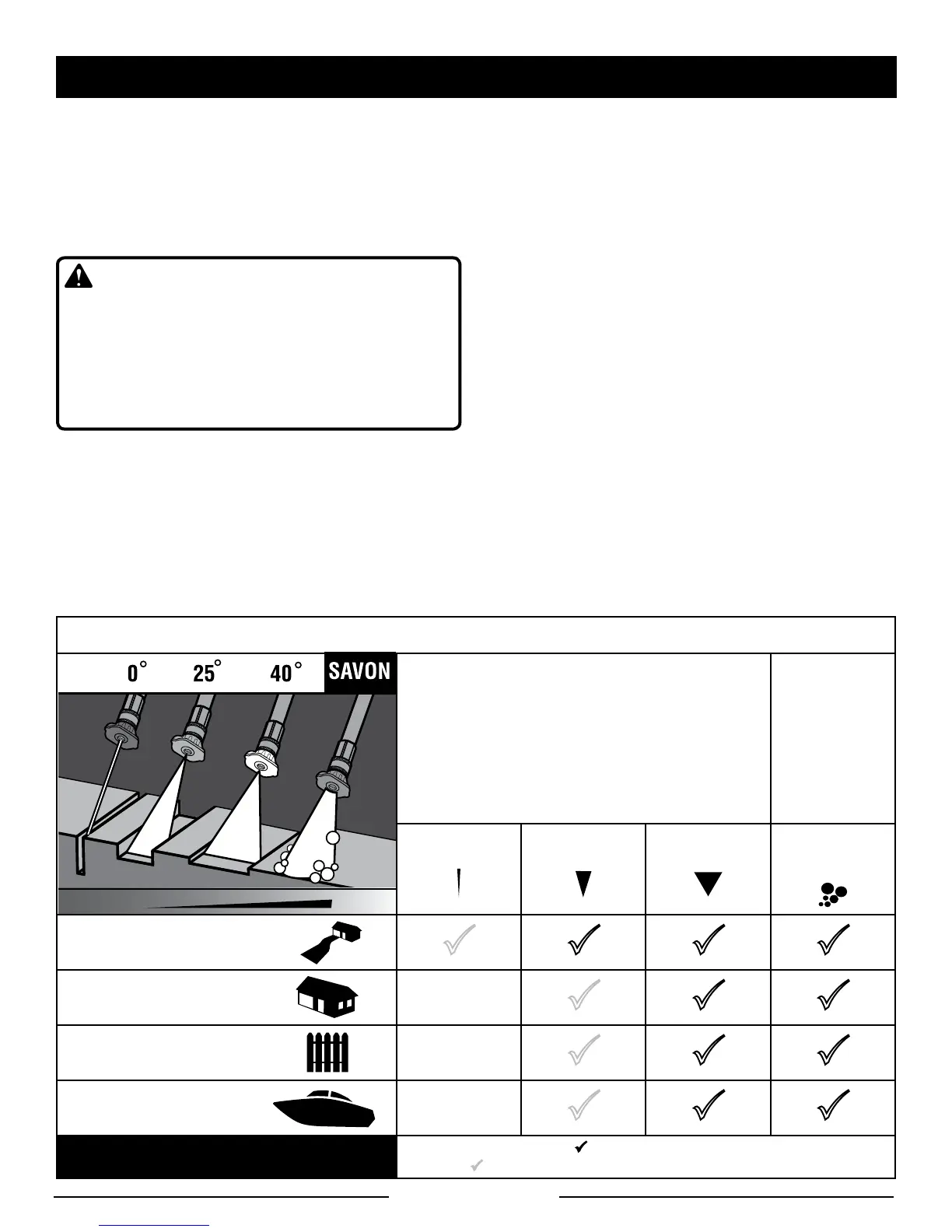 Avant de commencer tout nettoyage, sélectionner la buse