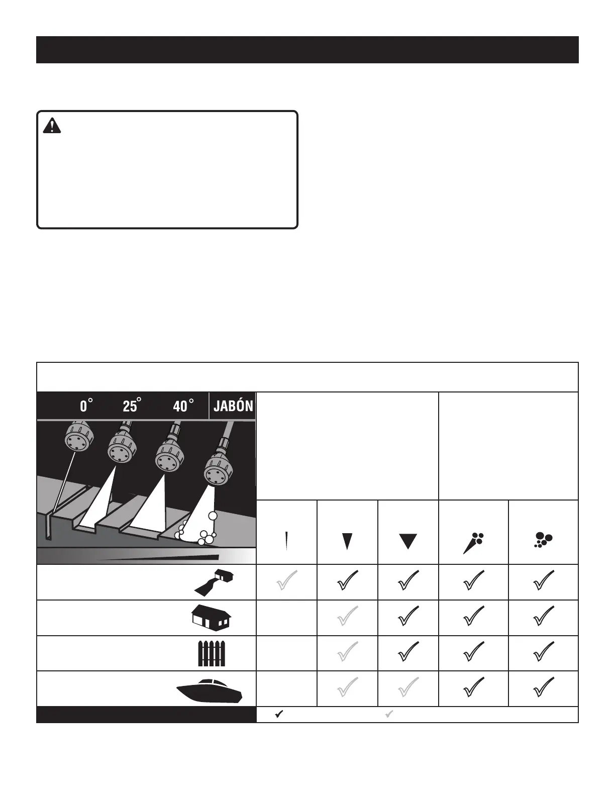 Boquilla recomendada Usar con cuidado en ciertas aplicacione