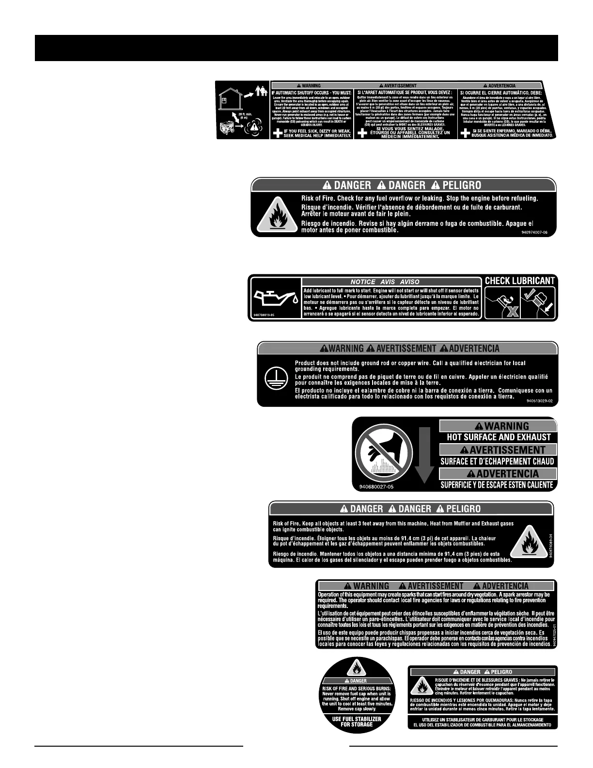 Never run the generator in enclosed areas