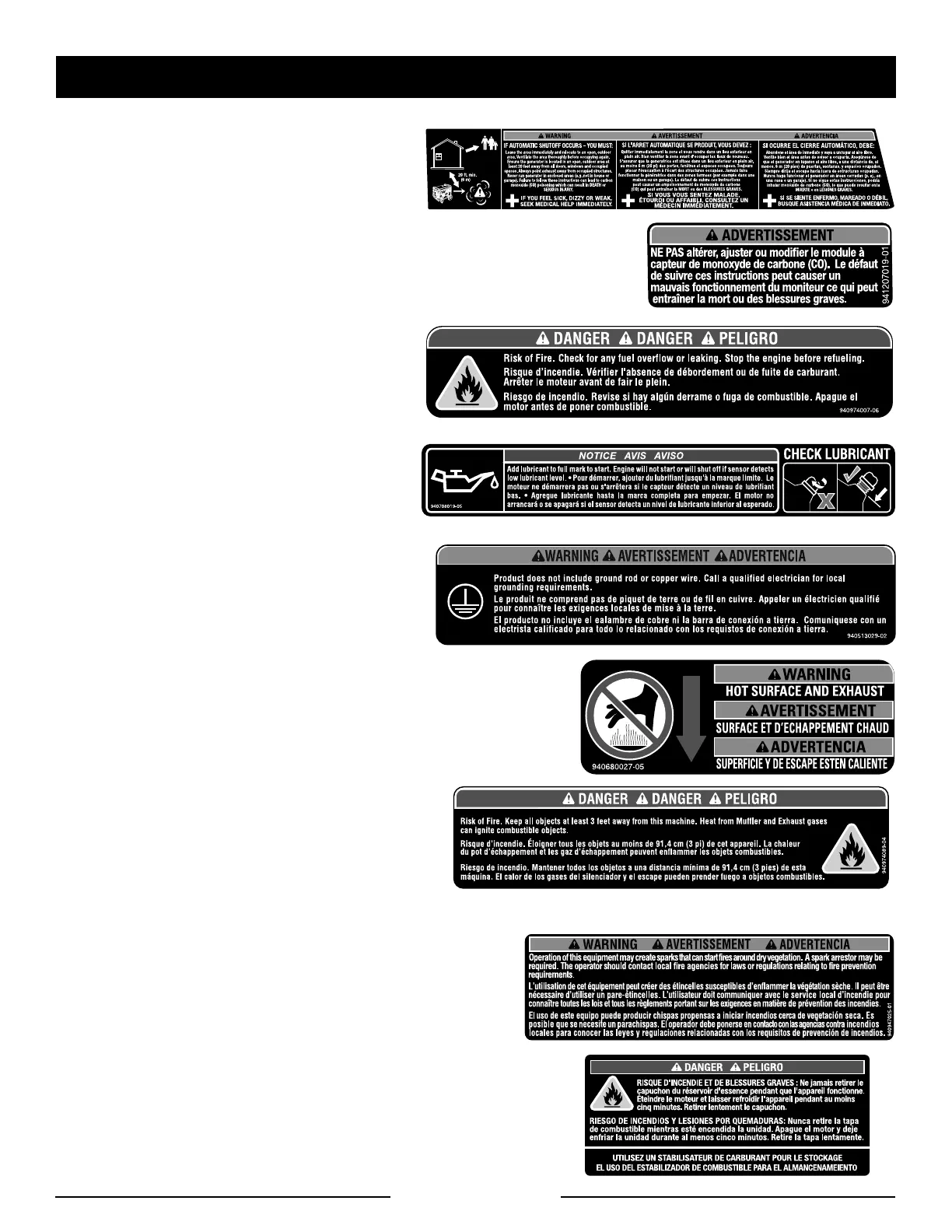 entraînera l’arrêt de la génératrice. Quitter immédiatement