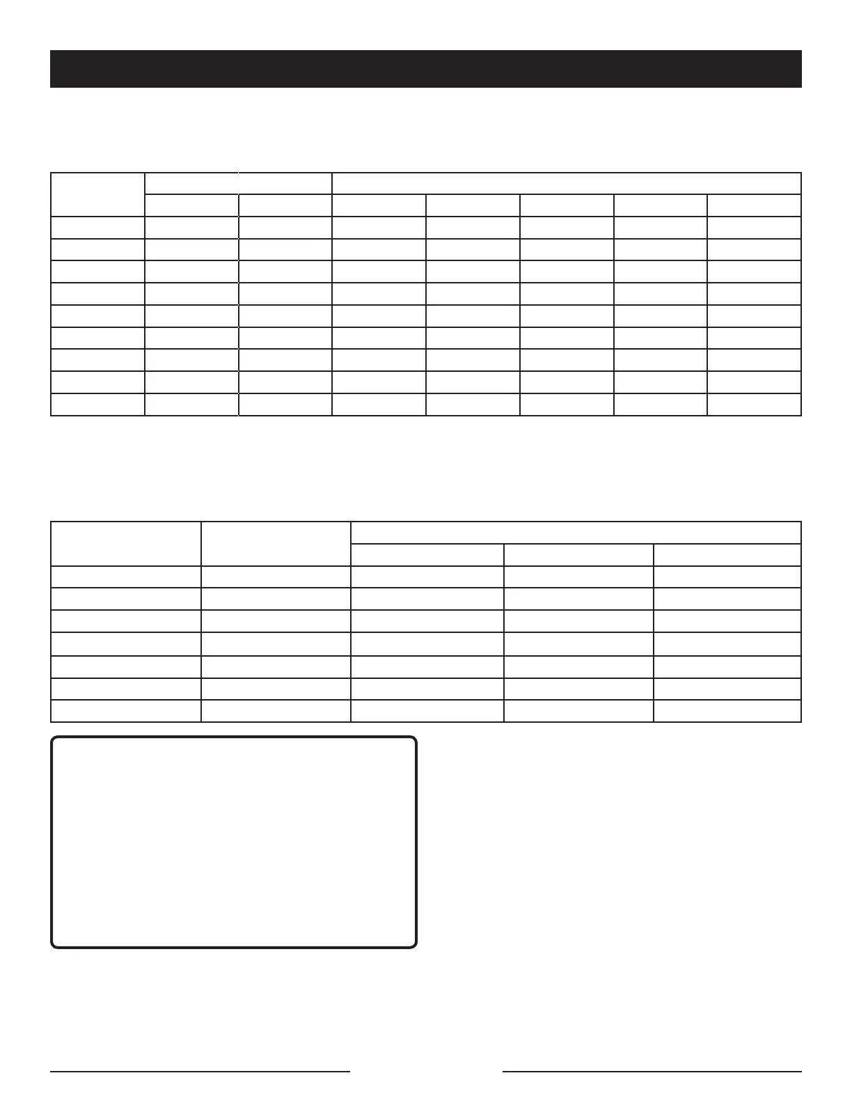 Refer to the table below to ensure the cable size of the extension cords you use are capable of carrying the required load.