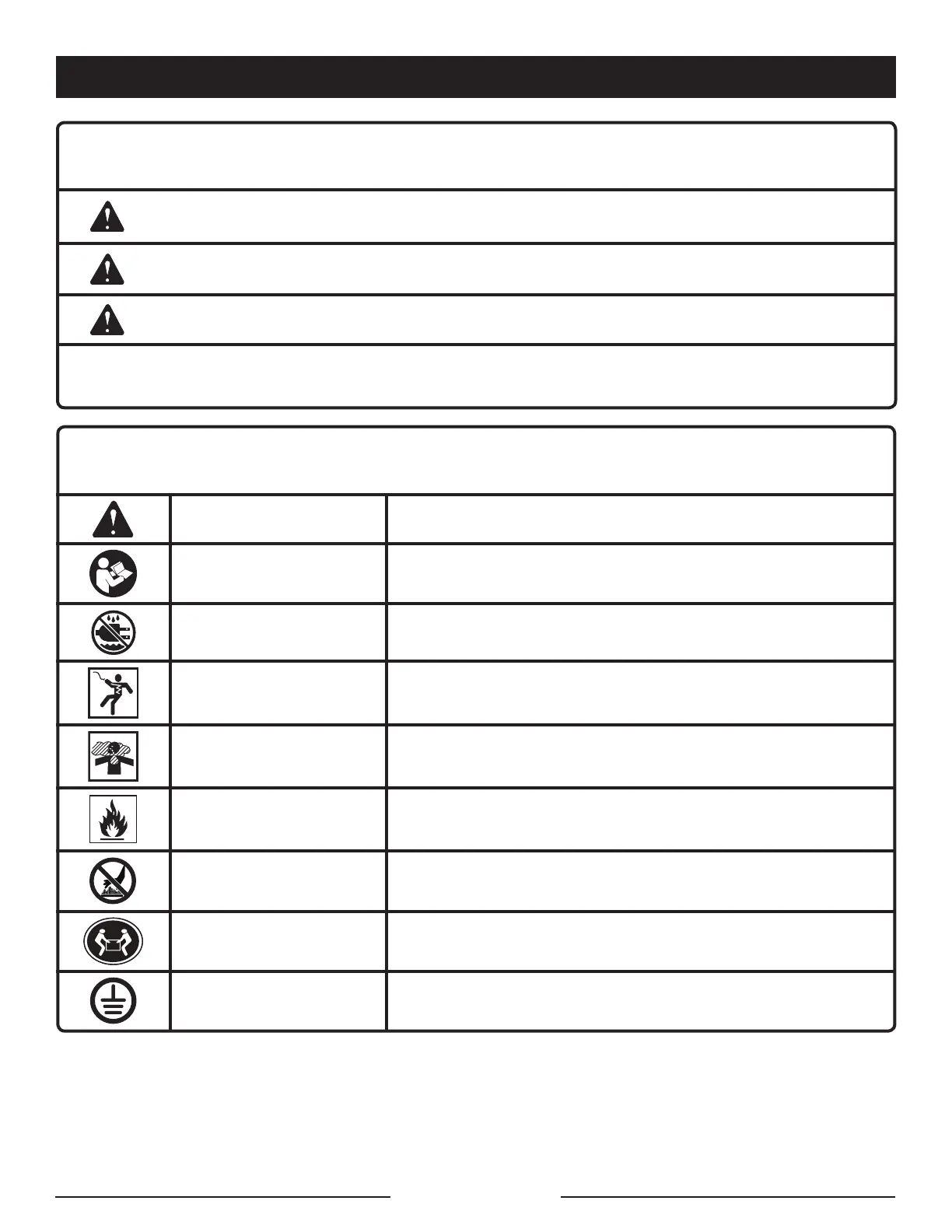 Danger au levage Pour réduire le risque de blessures graves, éviter de lever le génératrice seul.