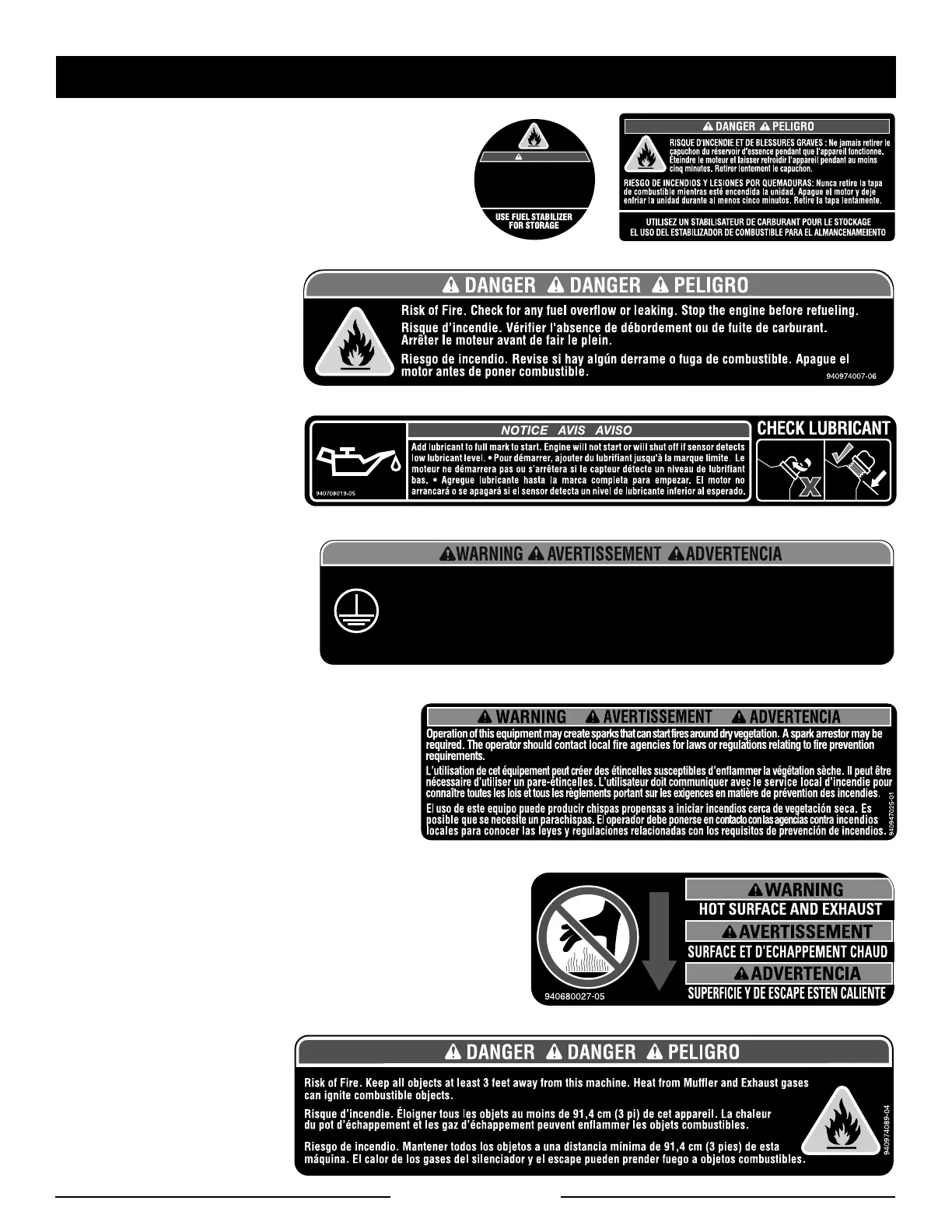No smoking when filling with gasoline. Do not overfill. Full