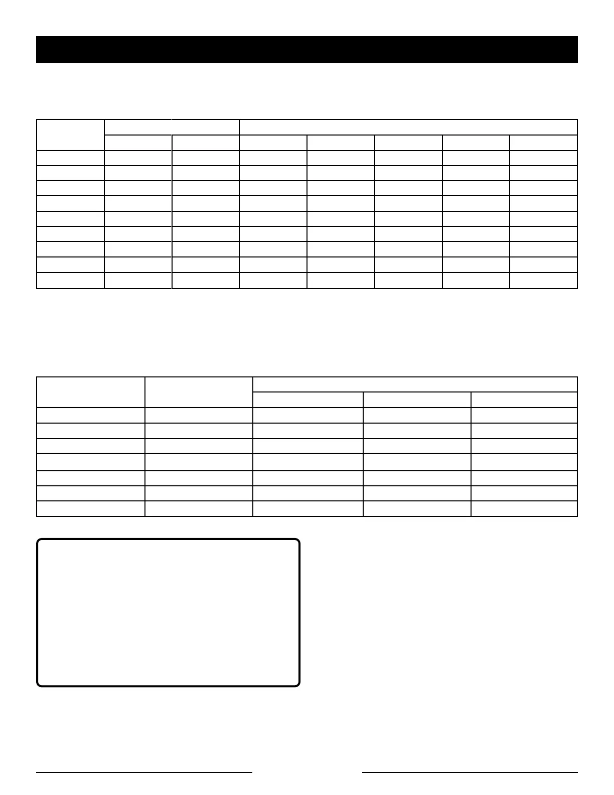 Refer to the table below to ensure the cable size of the extension cords you use are capable of carrying the required load.