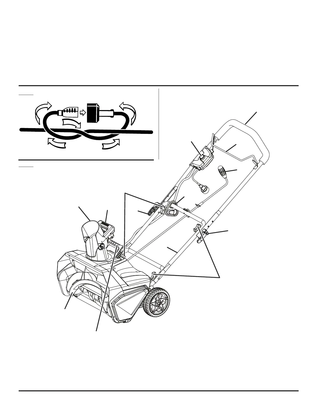 B - Chute deflector handle (poignée du déflecteur de goulotte, mango del