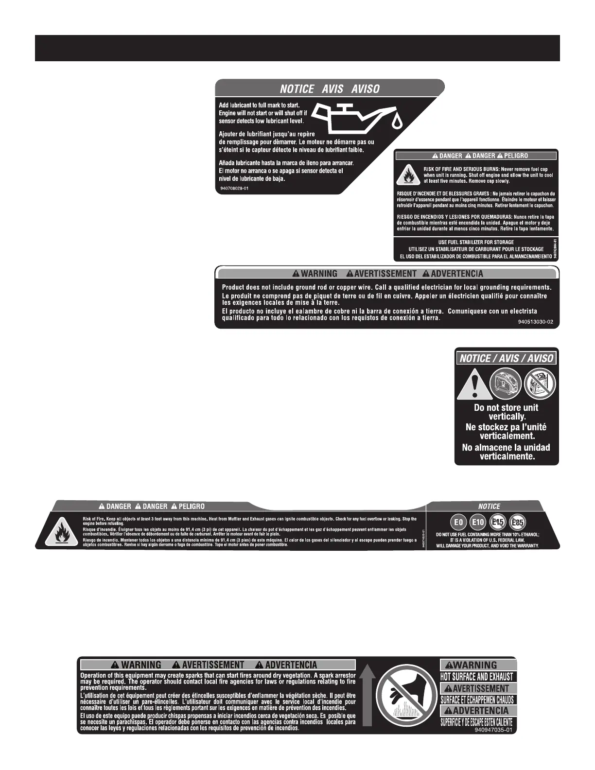 Toujours ranger la génératrice sur ses pieds. Ne jamais ranger l'appareil sur le côté ou dans une