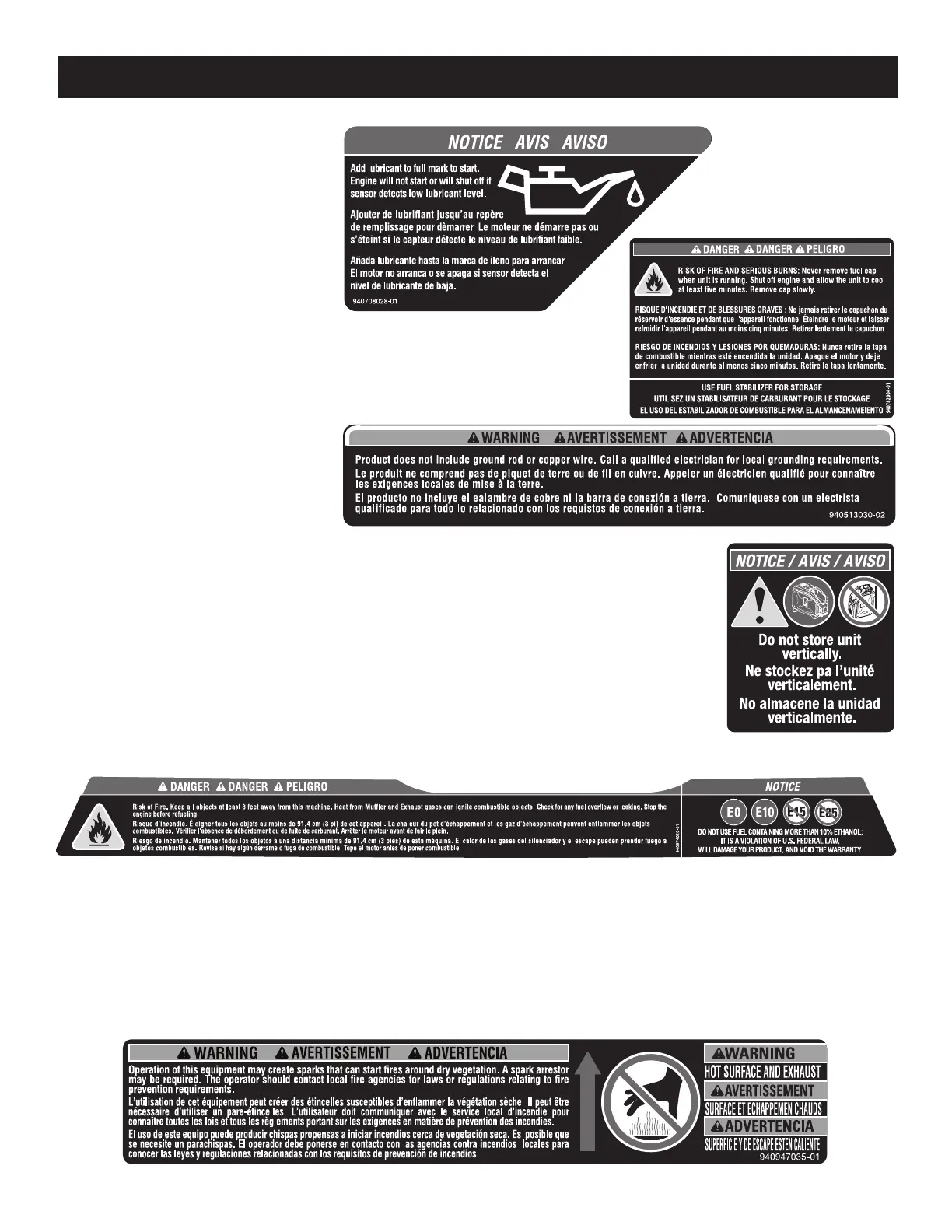 Guarde siempre el generador parado sobre las patas. Nunca guarde la unidad recostada sobre
