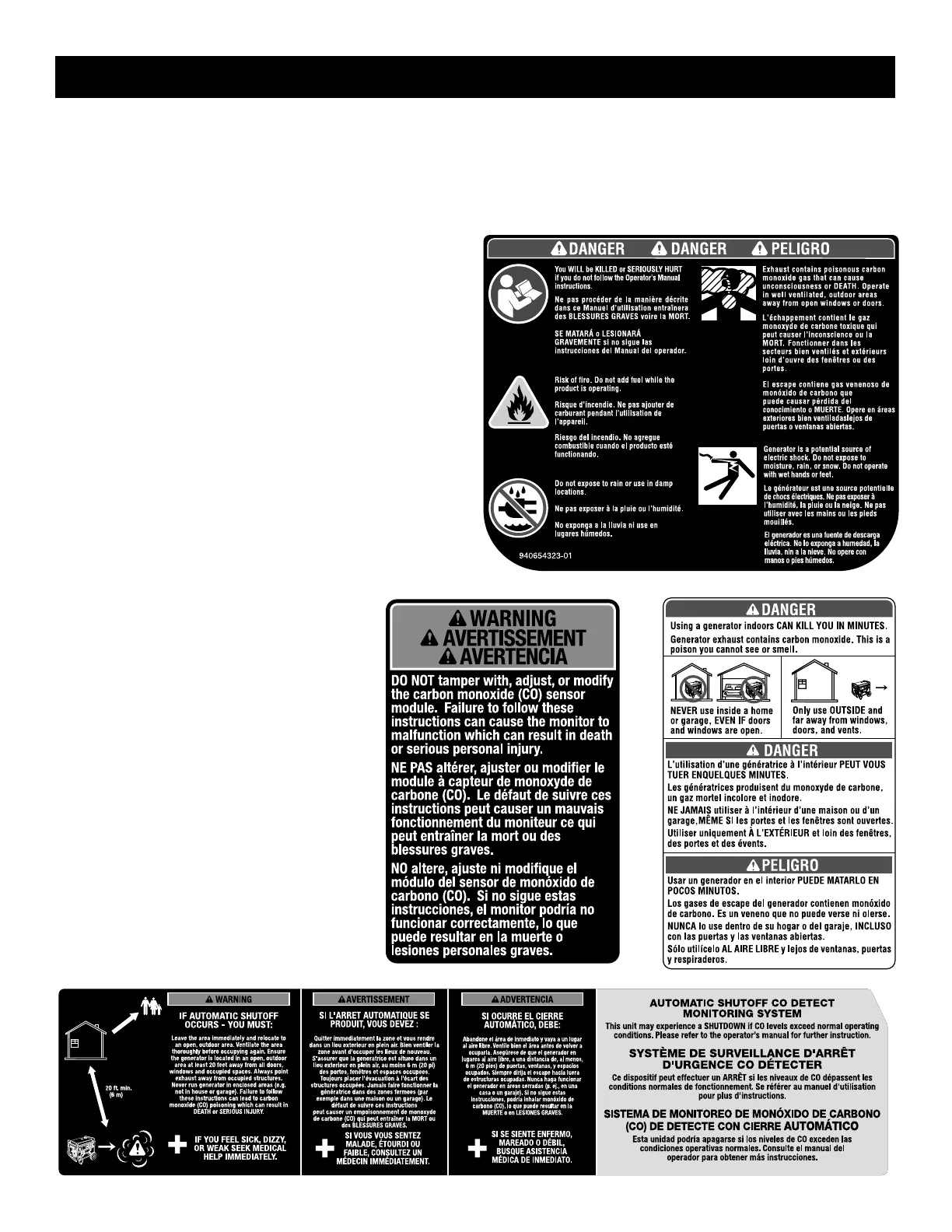 Generator exhaust contains carbon monoxide. This is a