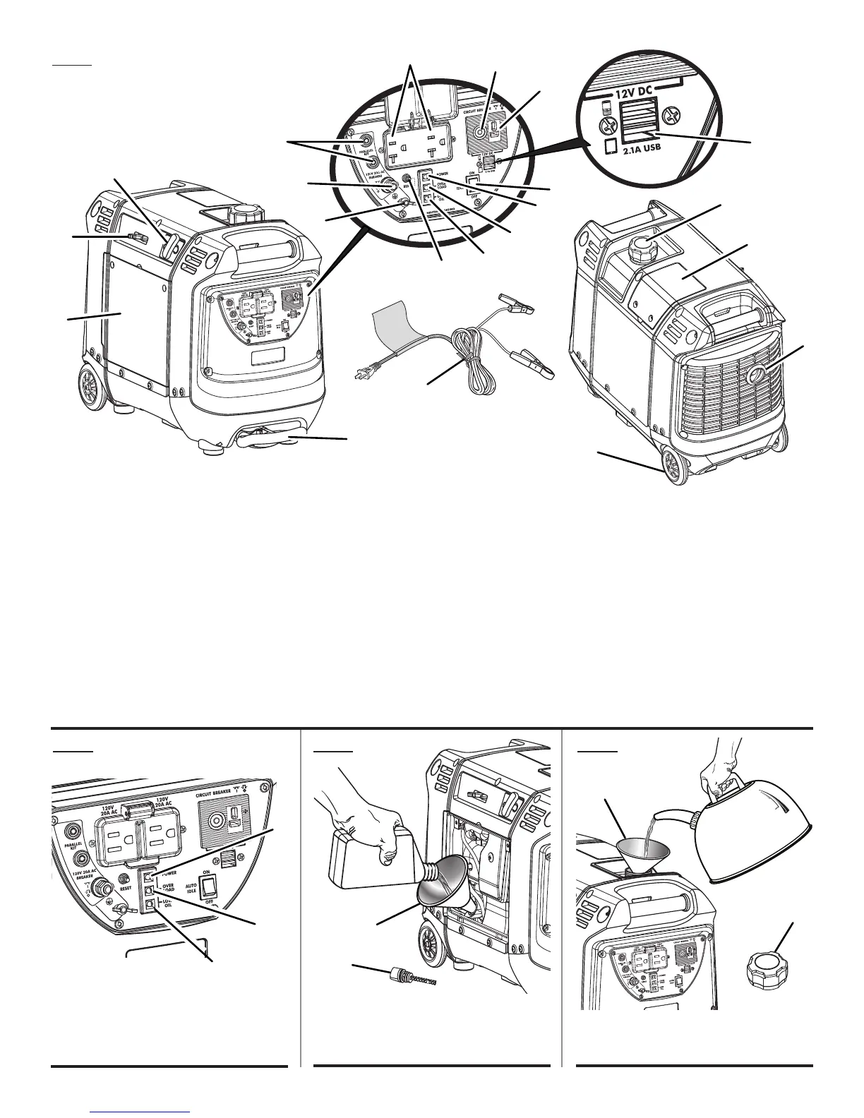 B - Oil cap/dipstick (bouchon / jauge d’huile,