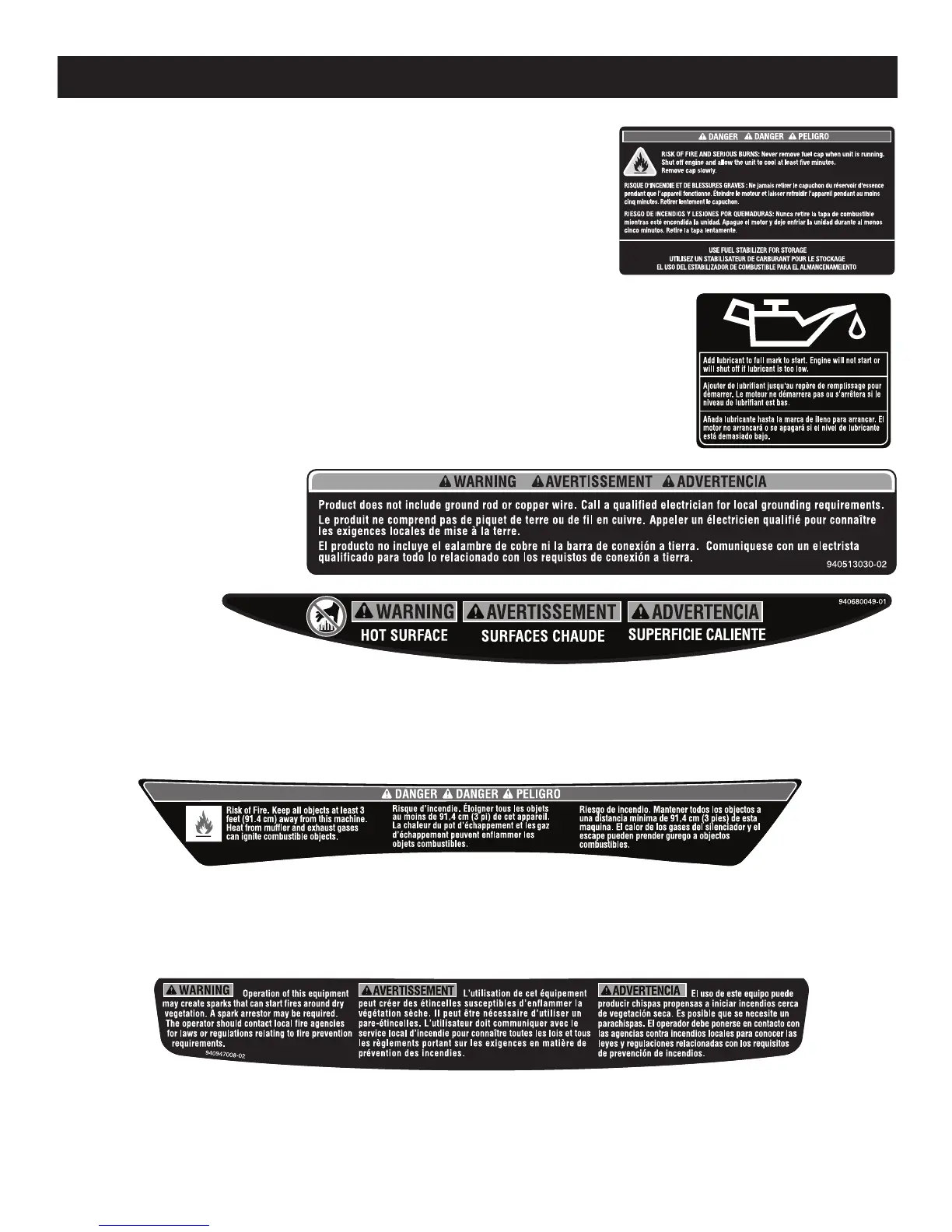 d'utiliser un pare-étincelles. L'utilisateur doit communiquer avec le service local d'incendie pour connaître toutes les lois