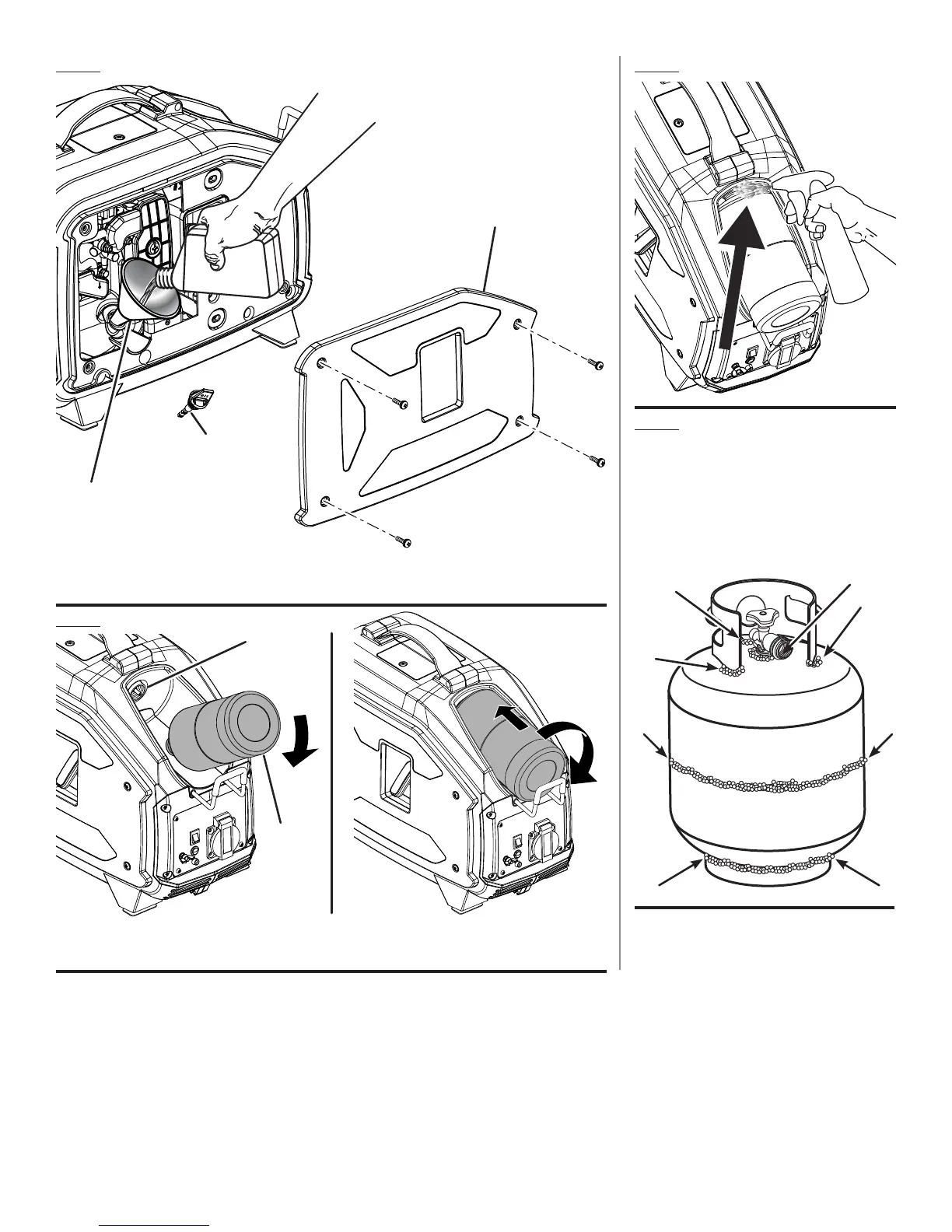 A - 1 lb. cylinder (bouteille de propane de 0,5 kg [1 lb], cilindro de gas propano de de 0,5 kg [1 lb])