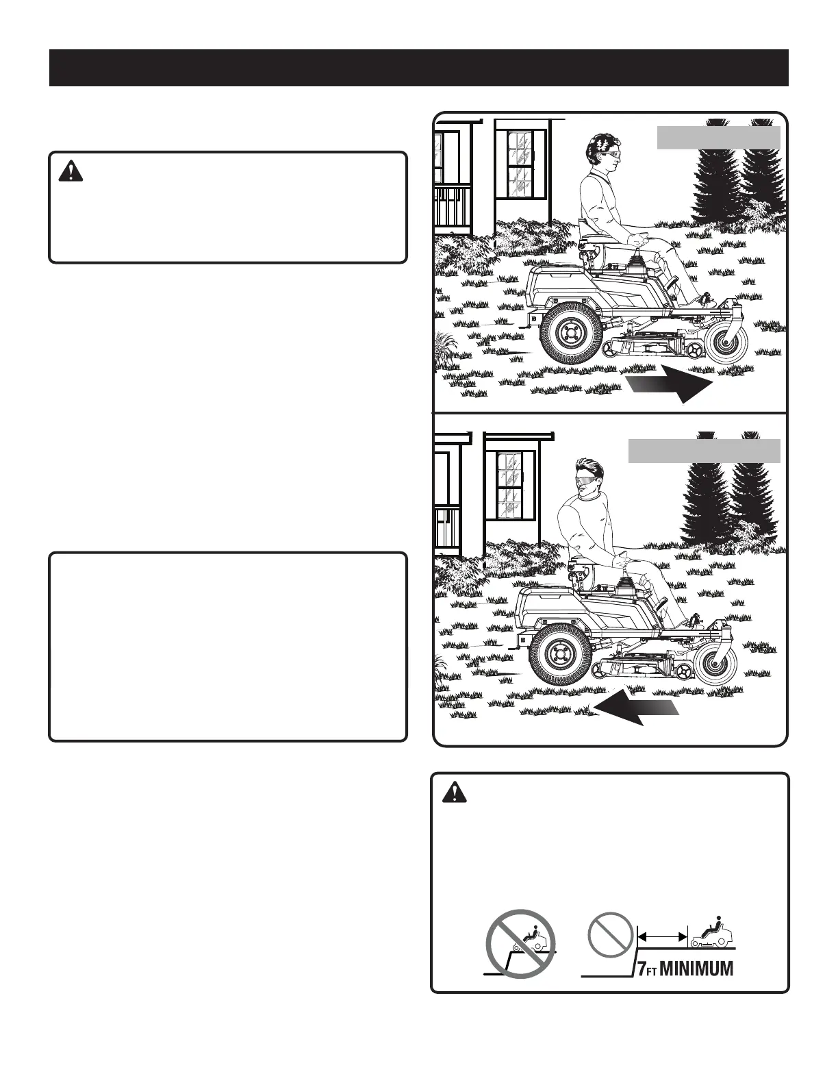 Stay at least two mowing widths (7 feet) away from any