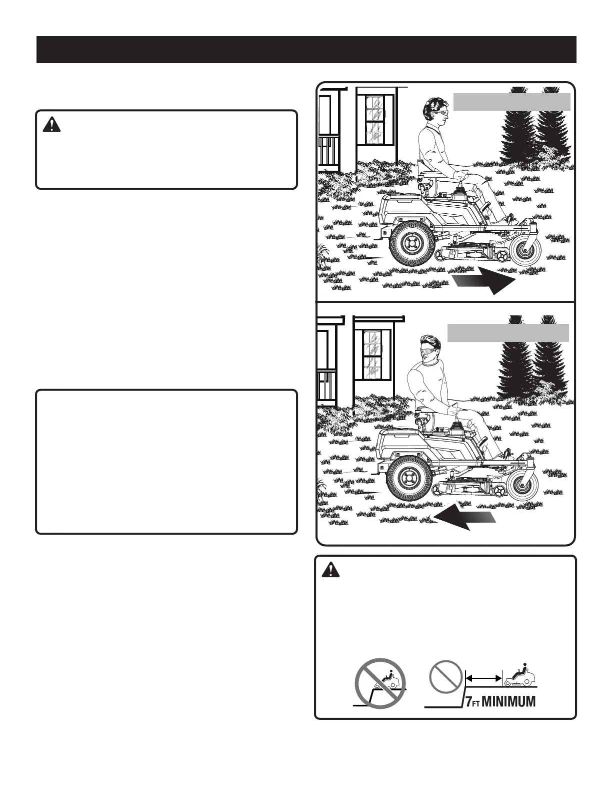 [7 pies]) de cunetas, caídas o agua. Las ruedas delanteras