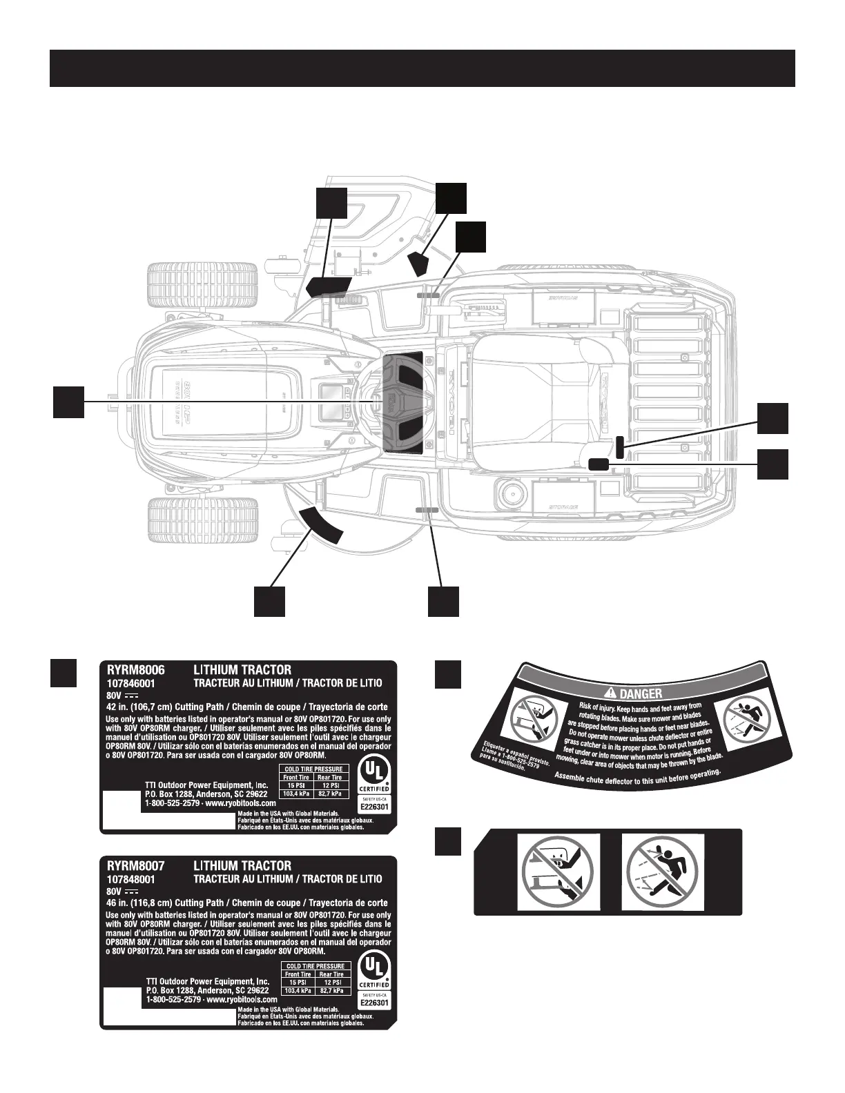 Ryobi RYRM8006 - Étiquettes de Sécurité