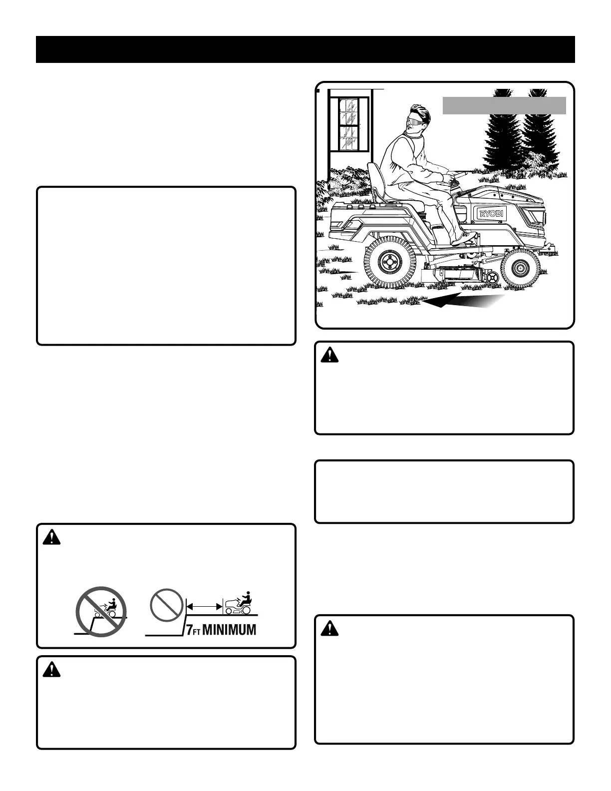 Stay at least two mowing widths (7 feet) away from any