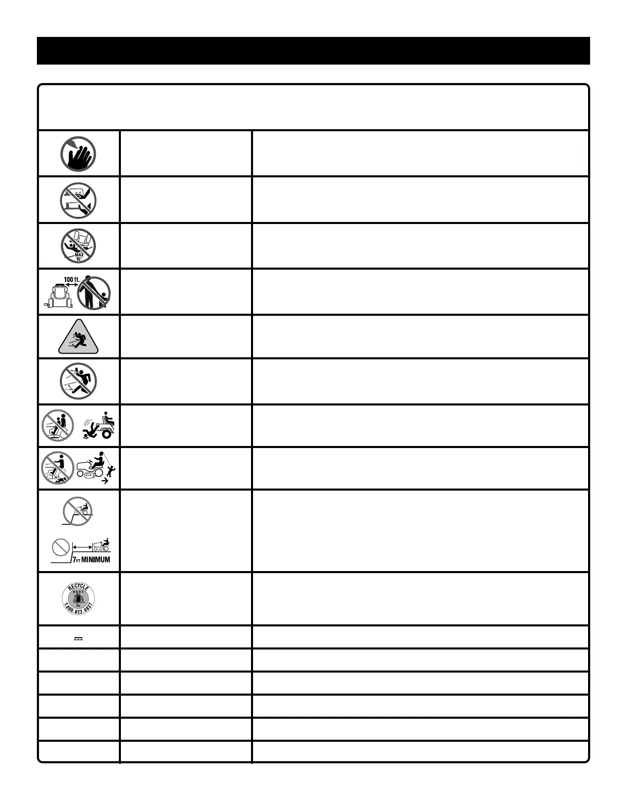 No Reach Do not reach hands or feet under mower deck.