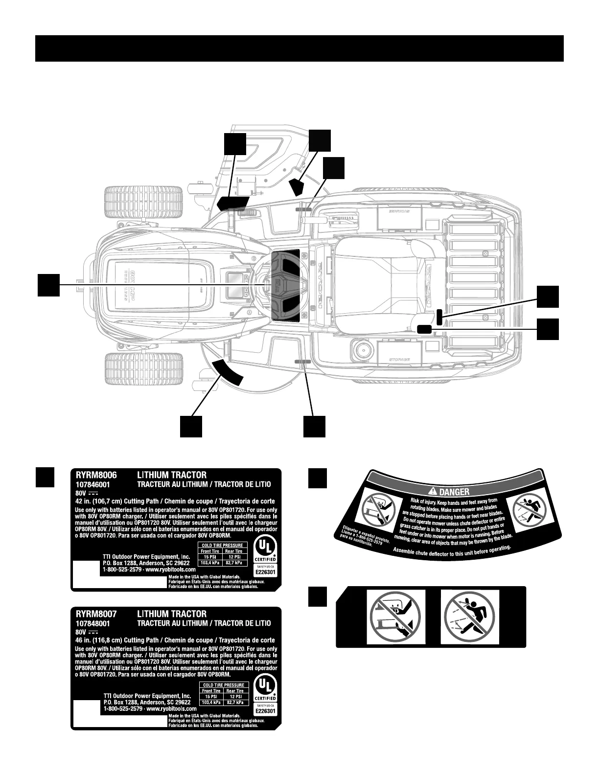 Ryobi RYRM8007 - Safety Labels