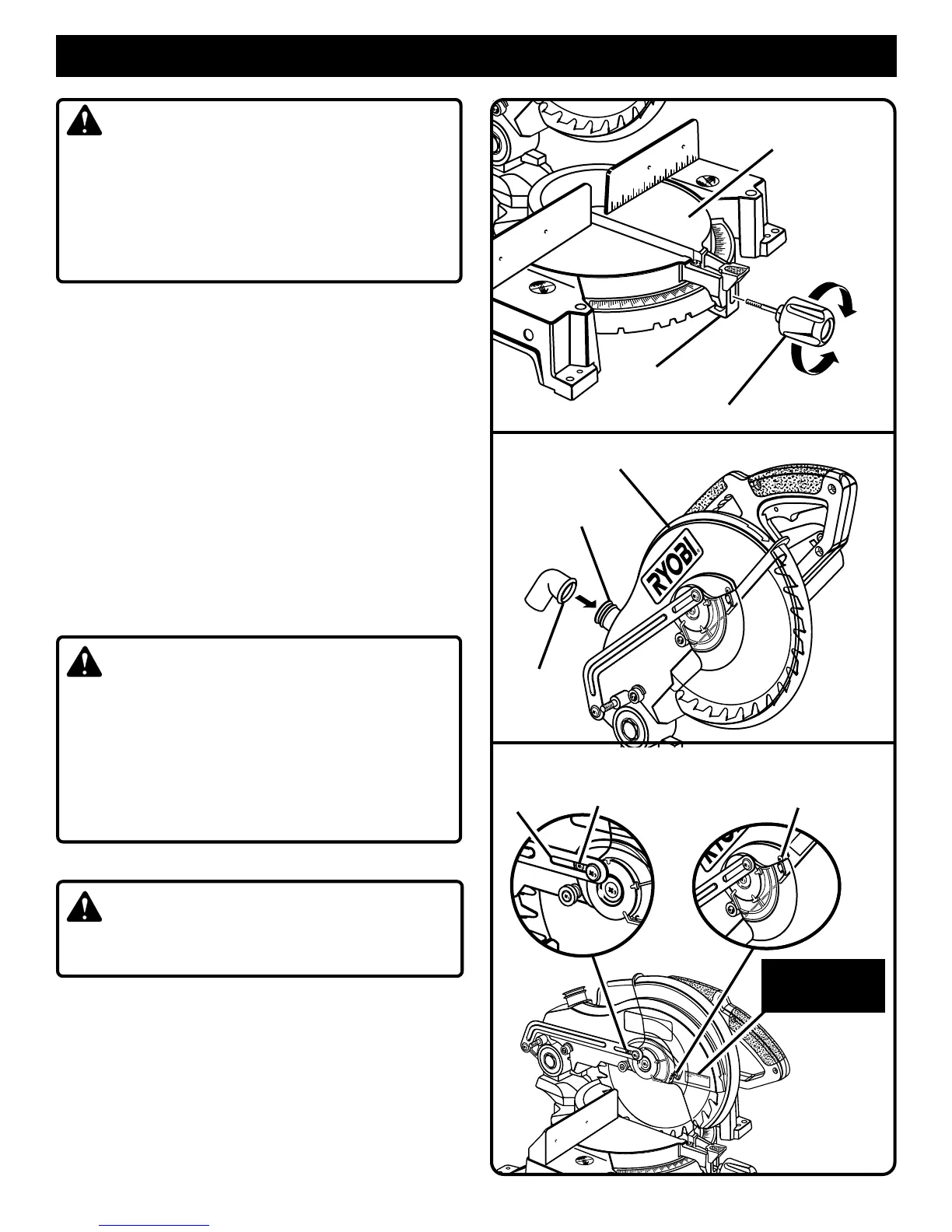 ■ Rotate lower blade guard up and remove screw B. Ro-