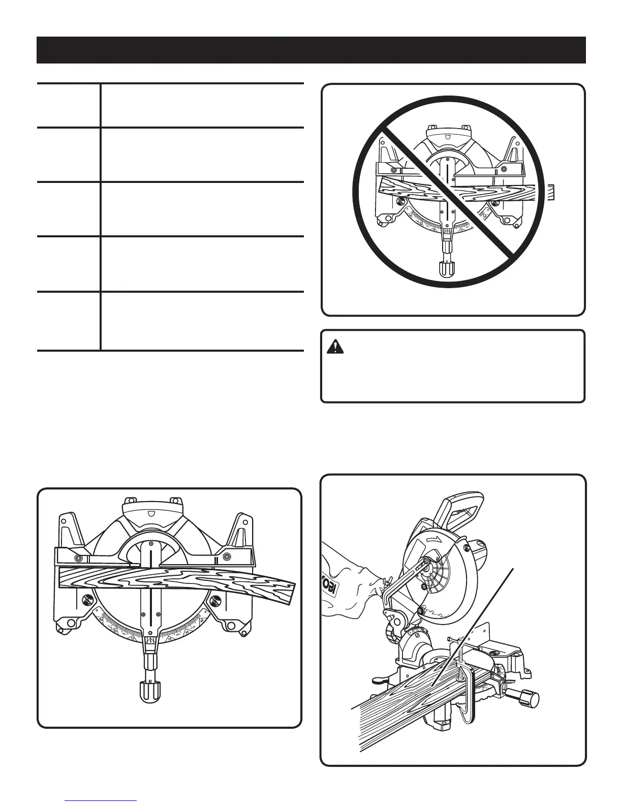 When cutting wide workpieces, such as 2 in. x 6 in., boards