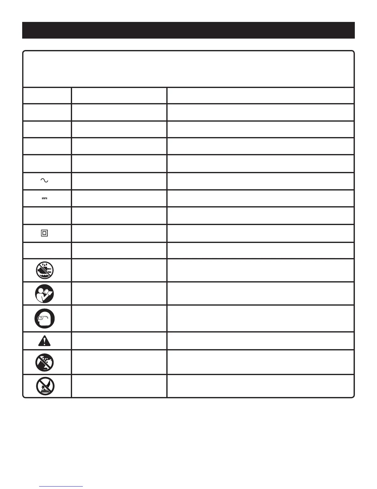 Some of the following symbols may be used on this tool. Please study them and learn their meaning. Proper