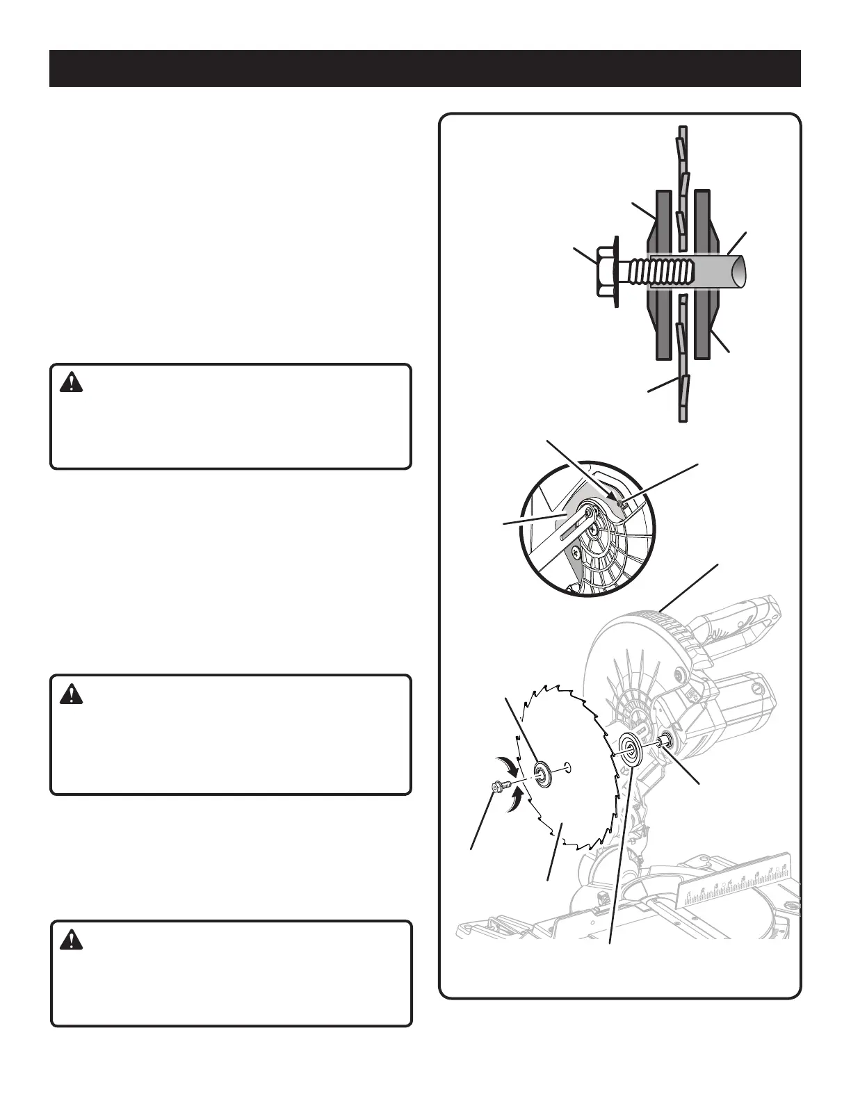 y móntela en el husillo. Los dientes de la sierra apuntan hacia