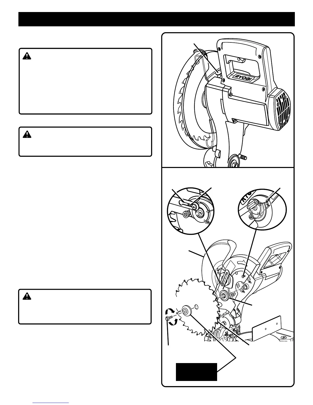 ■ Fit saw blade inside lower blade guard and onto spindle.