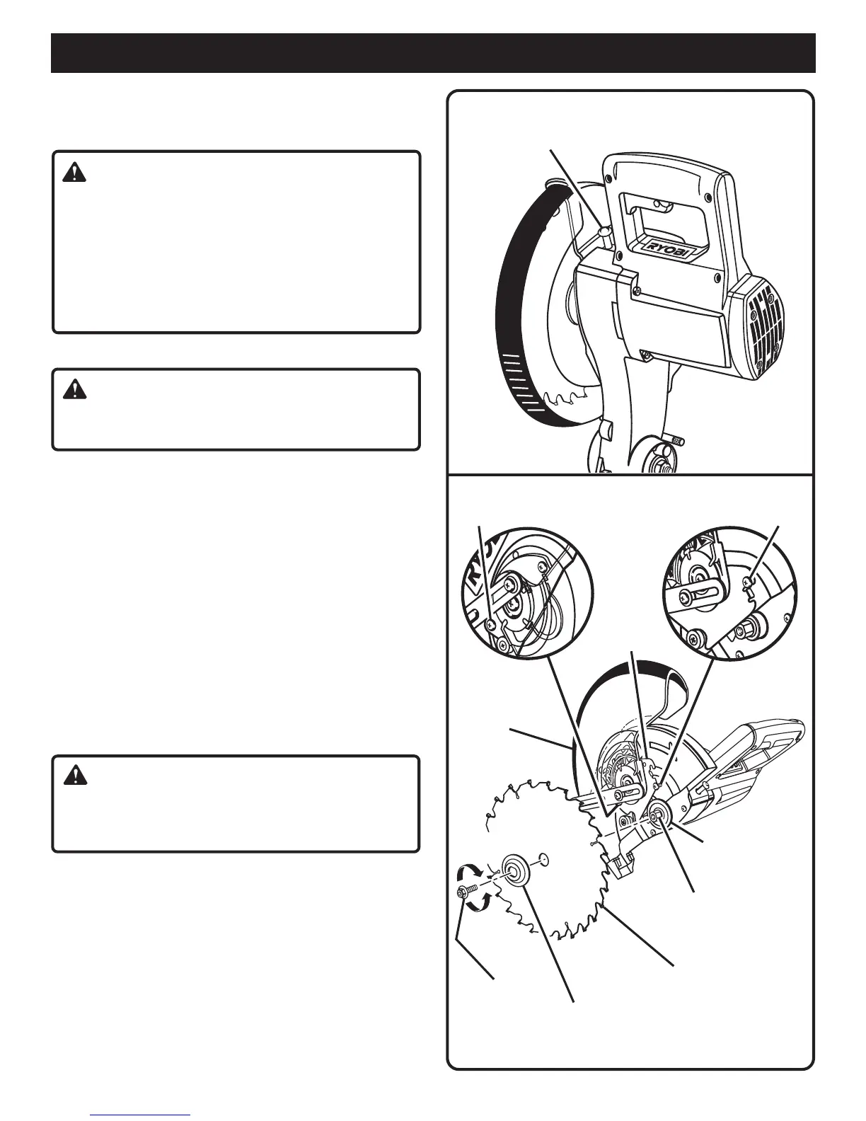 securing the blade on the spindle. Either of these situa-