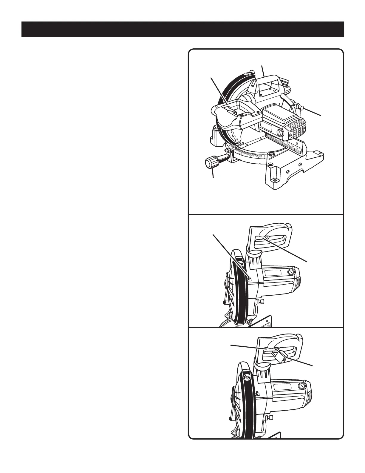down position. Lock saw arm by depressing the lock pin.