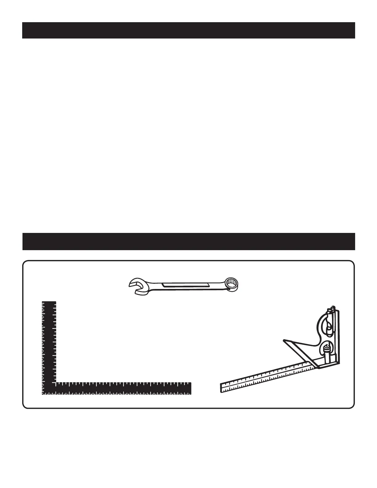 The following tools (not included) are needed for making adjustments or installing the blade: