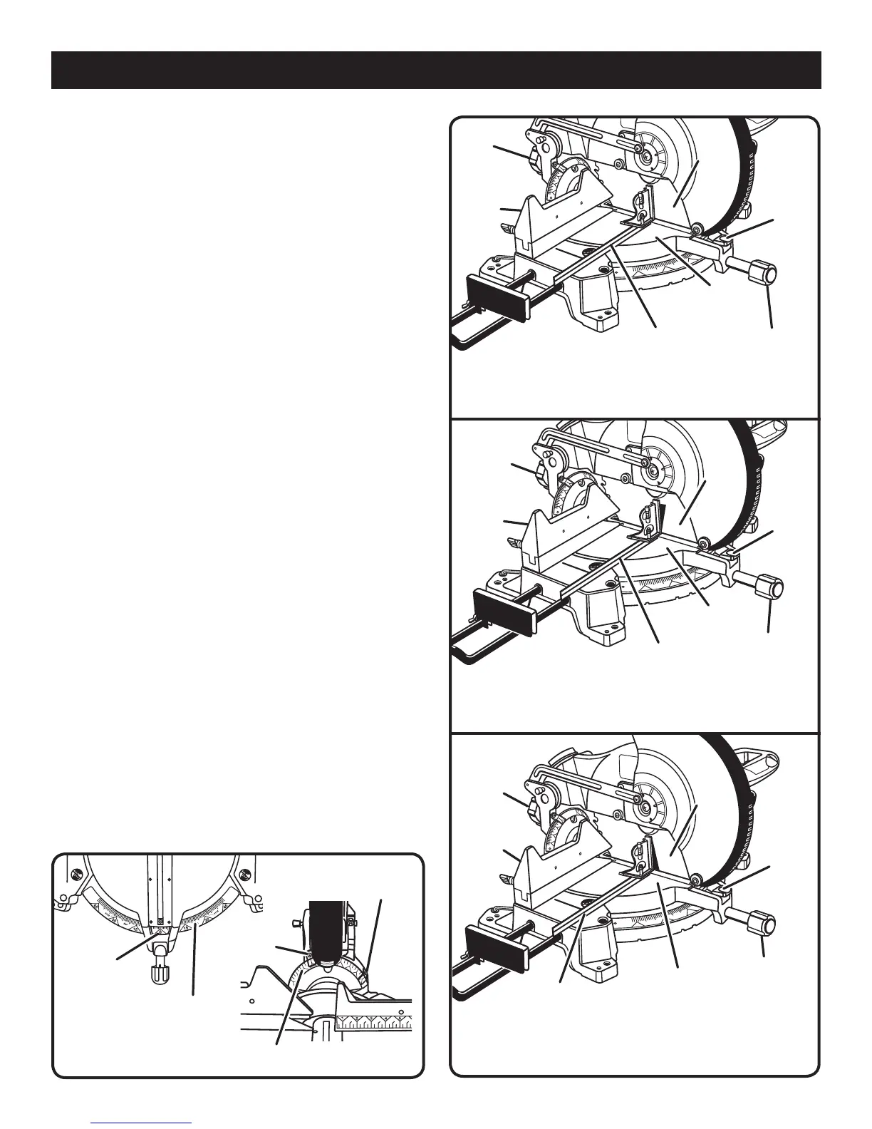 (blade set 90° to miter table). Tighten bevel lock knob.